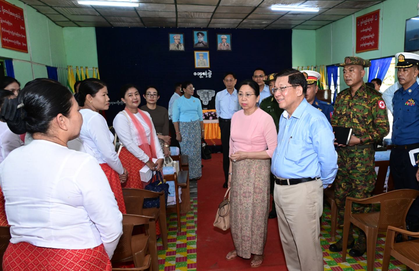တွေ့ဆုံပွဲအပြီးတွင် နိုင်ငံတော်လုံခြုံရေးနှင့် အေးချမ်းသာယာရေးကော်မရှင် ဥက္ကဋ္ဌ တပ်မတော်ကာကွယ်ရေးဦးစီးချုပ်သည် အရာရှိ၊ စစ်သည်များအား ရင်းရင်းနှီးနှီး နှုတ်ဆက်သည်။