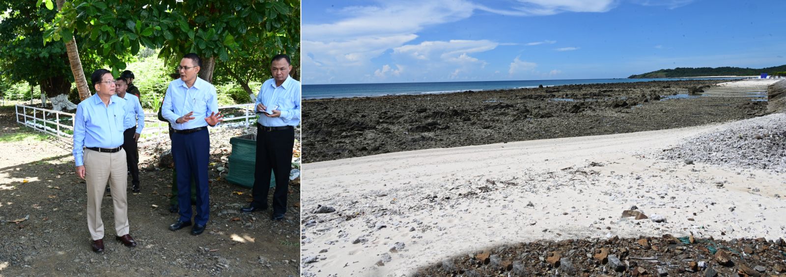 ထို့နောက် နိုင်ငံတော်လုံခြုံရေးနှင့်အေးချမ်းသာယာရေးကော်မရှင် ဥက္ကဋ္ဌ တပ်မတော်ကာကွယ်ရေးဦးစီးချုပ်နှင့်အဖွဲ့ဝင်များသည် ကျွန်းပတ်လမ်းတစ်လျှောက် မော်တော်ယာဉ်များဖြင့်လှည့်လည်ကြည့်ရှုကြပြီး ဗျိုင်းကျွန်းနှင့်ဂျယ်ရီကျွန်းဆက်လမ်း ဆောင်ရွက်ထားမှုအခြေအနေများ အားကြည့်ရှု စစ်ဆေးပြီး တာဝန်ရှိသူများ၏ တင်ပြ ချက်များအပေါ် ကိုကိုးကျွန်းပေါ်ရှိ မြေလွတ်နေရာများ၌ မျိုးကောင်းသည့် အုန်းပင် များအား စနစ်တကျဖြင့် အကွက်ချစိုက်ပျိုးရန်၊ စိုက်ပျိုးရေးလုပ်ငန်းများဆောင်ရွက်နိုင် ရန်အတွက် ပင်လယ်ရေမှ စိုက်ပျိုးရေထုတ်ယူသုံးစွဲနိုင်ရေး သုတေသနပြုဆောင်ရွက် ရန်နှင့် အခြားလိုအပ်သည်များကိုလမ်းညွှန်မှာကြားသည်။