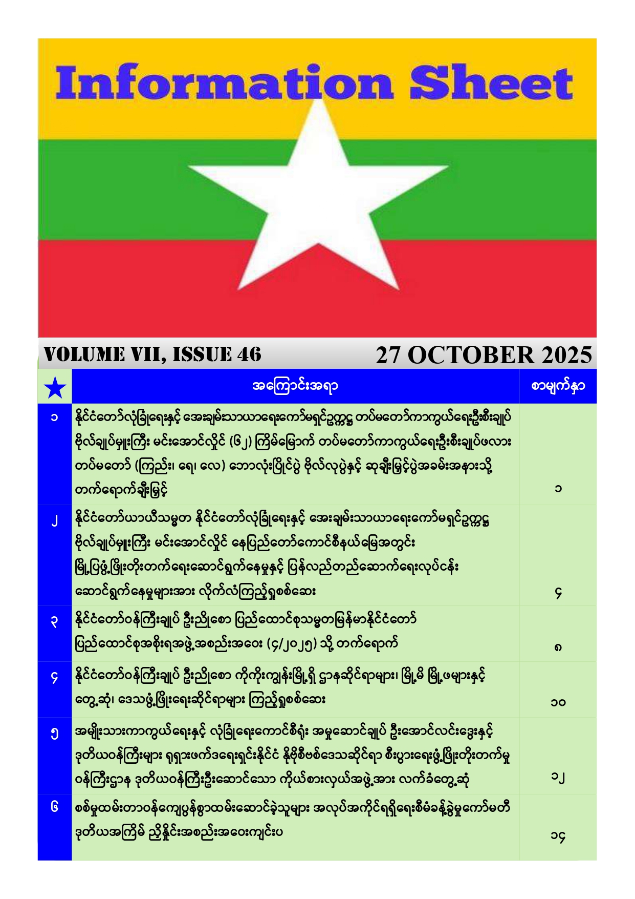 Information Sheets Volume VII, Issue 46 Myanmar, Volume VII, Issue 46, Eng (27-10-2025)