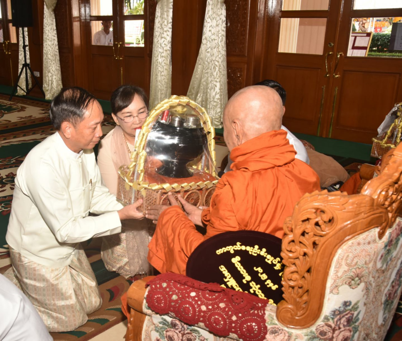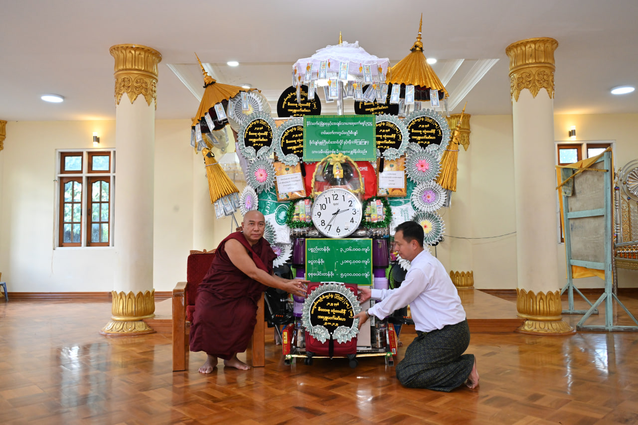 ထို့နောက် ကော်မရှင် ဒုတိယဥက္ကဋ္ဌ ဒုတိယတပ်မတော်ကာကွယ်ရေးဦးစီးချုပ် ကာကွယ်ရေးဦးစီးချုပ်(ကြည်း)နှင့်ဇနီး တို့က နိုင်ငံတော် သံဃမဟာနာယကအဖွဲ့ အကျိုး တော်ဆောင် မန္တလေးမြို့၊ မစိုးရိမ်တိုက်သစ် ဆရာတော်ကြီးထံ ကထိန်သင်္ကန်းနှင့် လှူဖွယ်ပစ္စည်းများကို ဆက်ကပ်လှူဒါန်းသည်။