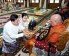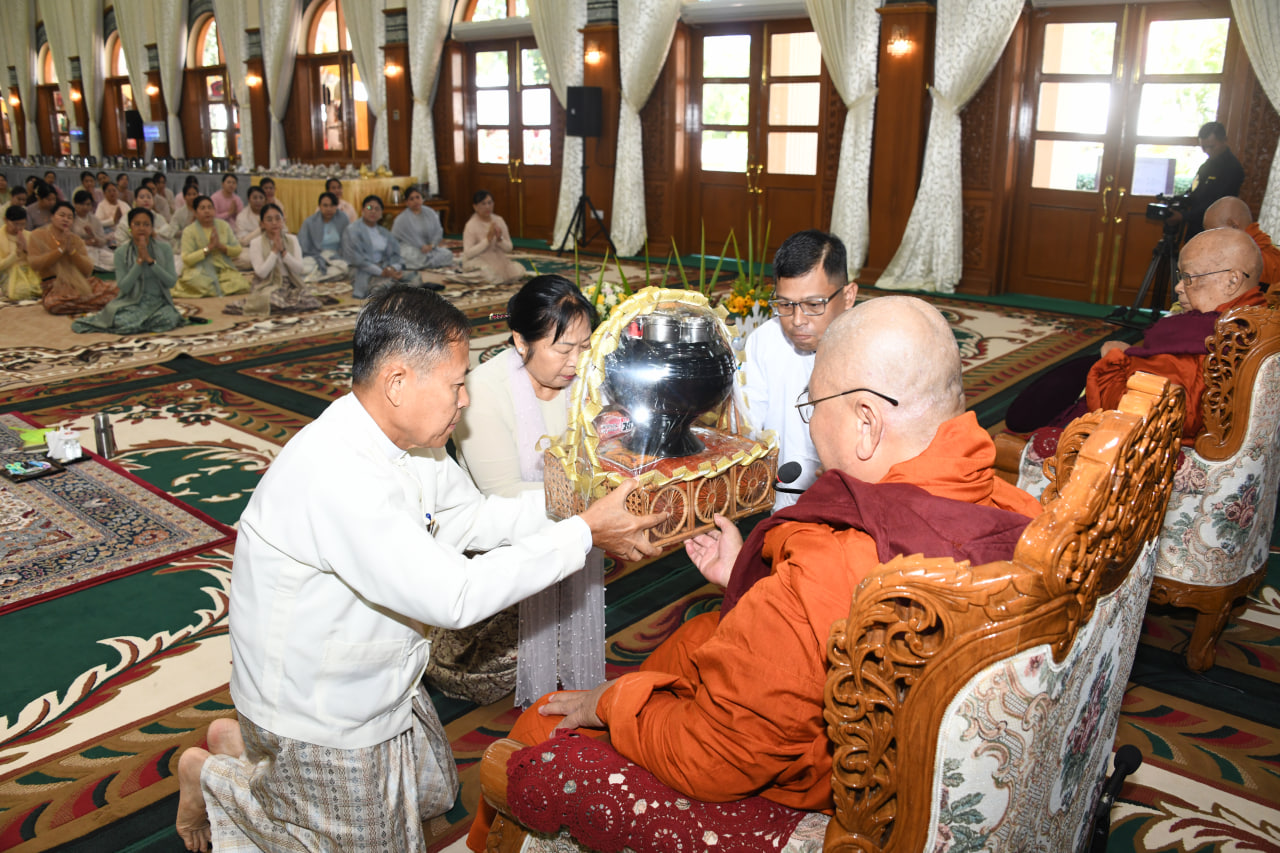 ထို့နောက် အခမ်းအနားကို “ဗုဒ္ဓသာသနံ စိရံ တိဋ္ဌတု” သုံးကြိမ်ရွတ်ဆိုဆု တောင်း၍ ရုပ်သိမ်းကြပြီး အခမ်းအနားအပြီးတွင် နိုင်ငံတော်သံဃမဟာနာယကအဖွဲ့ ဥက္ကဋ္ဌ သန်လျင်မင်းကျောင်းဆရာတော်ကြီးအမှူးပြုသည့် ဆရာတော်၊ သံဃာတော် များအား နိုင်ငံတော်လုံခြုံရေးနှင့် အေးချမ်းသာယာရေးကော်မရှင်ဥက္ကဋ္ဌ တပ်မတော် ကာကွယ်ရေးဦးစီးချုပ်နှင့်ဇနီး၊ ဧည့်ပရိသတ်များက နေ့ဆွမ်းဆက်ကပ် လှူဒါန်းခဲ့ကြ သည်။