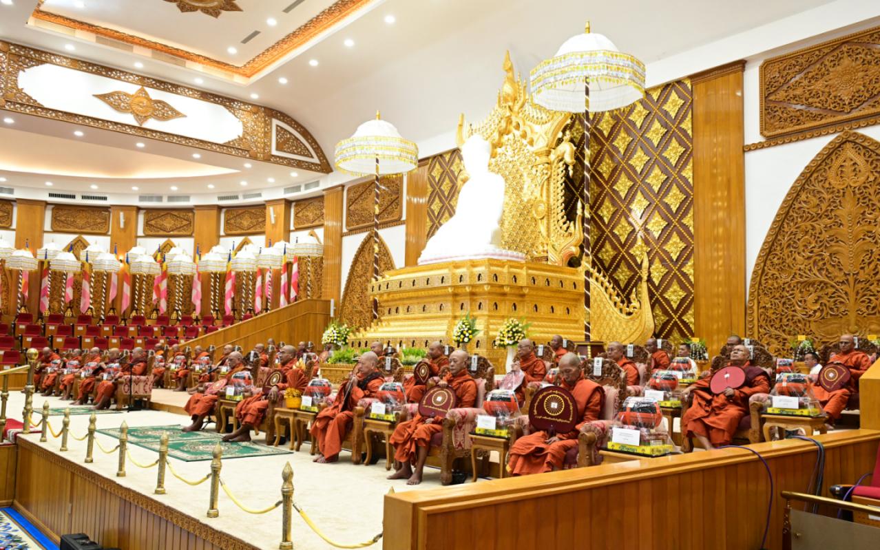 ပြည်ထောင်စုသမ္မတမြန်မာနိုင်ငံတော်၊ အမျိုးသားကာကွယ်ရေးနှင့်လုံခြုံရေး ကောင်စီ ၂၀၂၅ ခုနှစ် ကထိန်သင်္ကန်းဆက်ကပ်လှူဒါန်းပွဲ အခမ်းအနားကို ယနေ့နံနက် ပိုင်းတွင် ပြည်ထောင်စုနယ်မြေနေပြည်တော်၊ ဒက္ခိဏသီရိမြို့နယ်၊ မာရဝိဇယဗုဒ္ဓ ဥယျာဉ်ဝတ္ထုကံတော်အတွင်းရှိ အဂ္ဂါဓိပတိသာသနာ့ဗိမာန်တော်ကြီး၌ ဆင်ယင် ကျင်းပရာ ပြည်ထောင်စုသမ္မတမြန်မာနိုင်ငံတော်ယာယီသမ္မတ နိုင်ငံတော်လုံခြုံရေးနှင့် အေးချမ်းသာယာရေးကော်မရှင်ဥက္ကဋ္ဌ ဗိုလ်ချုပ် မှူးကြီး မင်းအောင်လှိုင် နှင့် ဇနီး ဒေါ်ကြူကြူလှတို့ တက်ရောက်၍ ကထိန်လျာ သင်္ကန်းနှင့် ကထိန်လှူဖွယ်ပစ္စည်းများ ဆက်ကပ်လှူဒါန်းသည်။