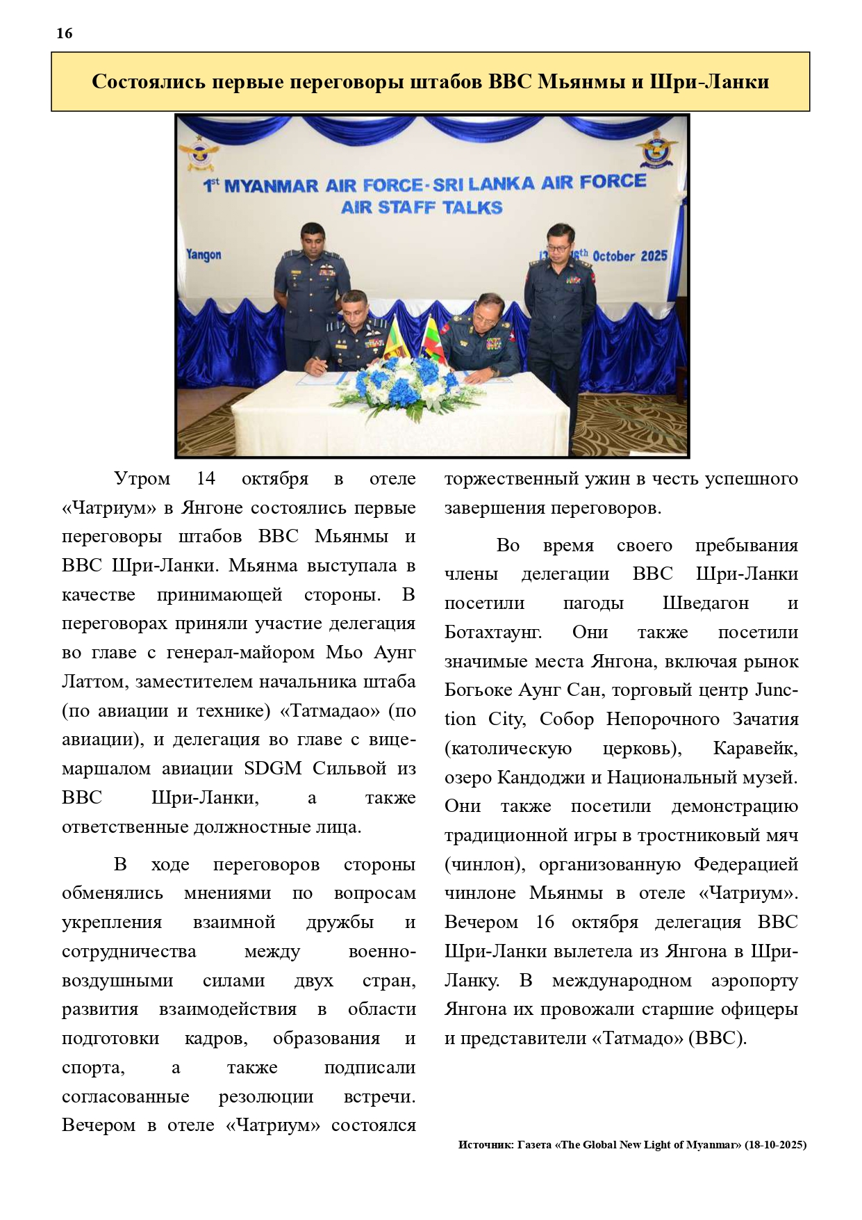 Information Sheet Volume VII, Issue 45, Russian (22-10-2025)
