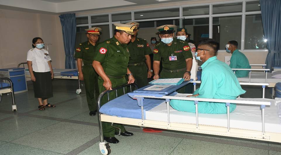 ထို့နောက် တိုင်းစစ်ဌာနချုပ်အလိုက် တိုင်းမှူးများနှင့် တာဝန်ရှိသူများသည် ဆေးရုံများအတွင်း လှည့်လည် ကြည့်ရှုစစ်ဆေး၍ လိုအပ်သည်များ ညှိနှိုင်းဆောင်ရွက် ပေးခဲ့ကြောင်း သတင်းရရှိသည်။