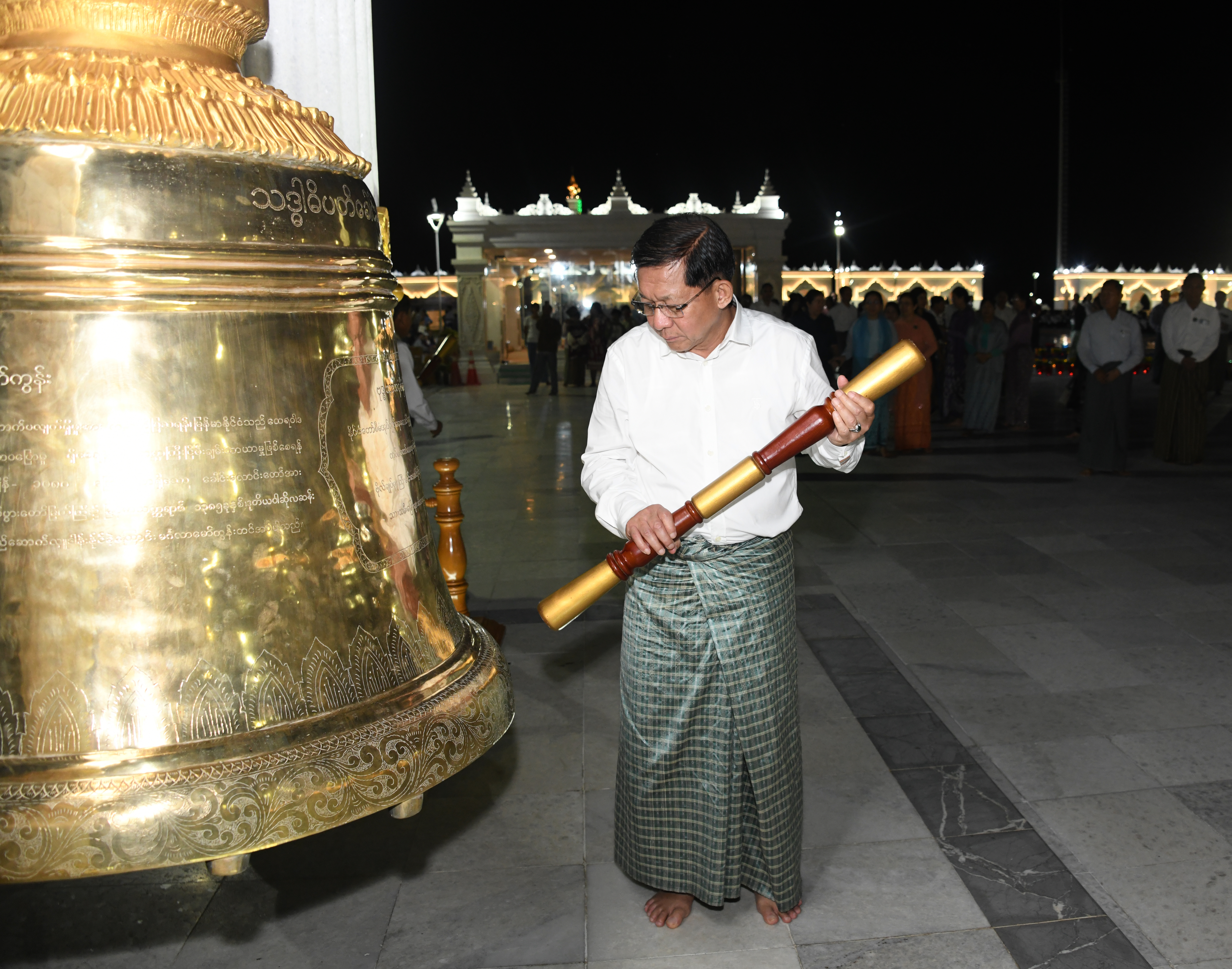 ထို့နောက် နိုင်ငံတော်ယာယီသမ္မတ နိုင်ငံတော်လုံခြုံရေးနှင့် အေးချမ်းသာယာ ရေးကော်မရှင်ဥက္ကဋ္ဌ နှင့် ဇနီးတို့က မာရဝိဇယဗုဒ္ဓရုပ်ပွားတော်မြတ်ကြီး တန်ဆောင် တိုင်မီးထွန်းပွဲတော် မီးပုံးပျံလွှတ်တင်ပူဇော်ခြင်း ဖွင့်ပွဲအခမ်းအနားအား ဖဲကြိုးဖြတ် ဖွင့်လှစ်ပေးကြသည်။