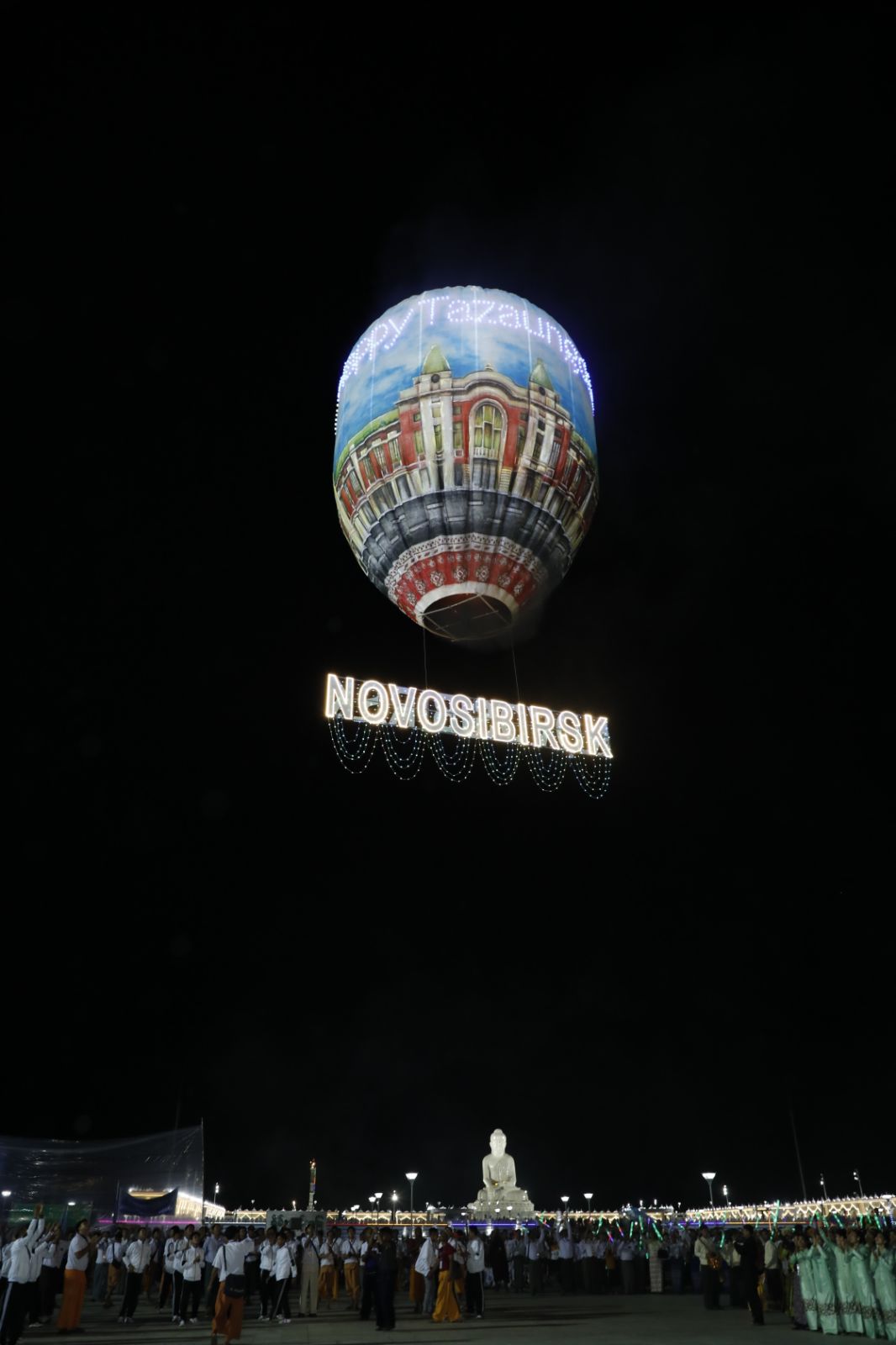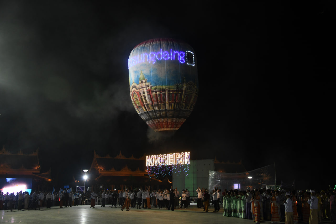 ၎င်းနောက် ရုရှား- မြန်မာ ချစ်ကြည်ရေးအထိမ်းအမှတ်မီးပုံးပျံကို လွှတ်တင် ကြပြီး အဆိုပါ မီးပုံးပျံတွင် NOVOSIBIRSK စာသားကို လှပစွာချိတ်ဆွဲထားရှိပြီး ဝေဟင်ထက် သို့ လှပစွာဖြင့် လွှတ်တင်ခဲ့ကြသည်။