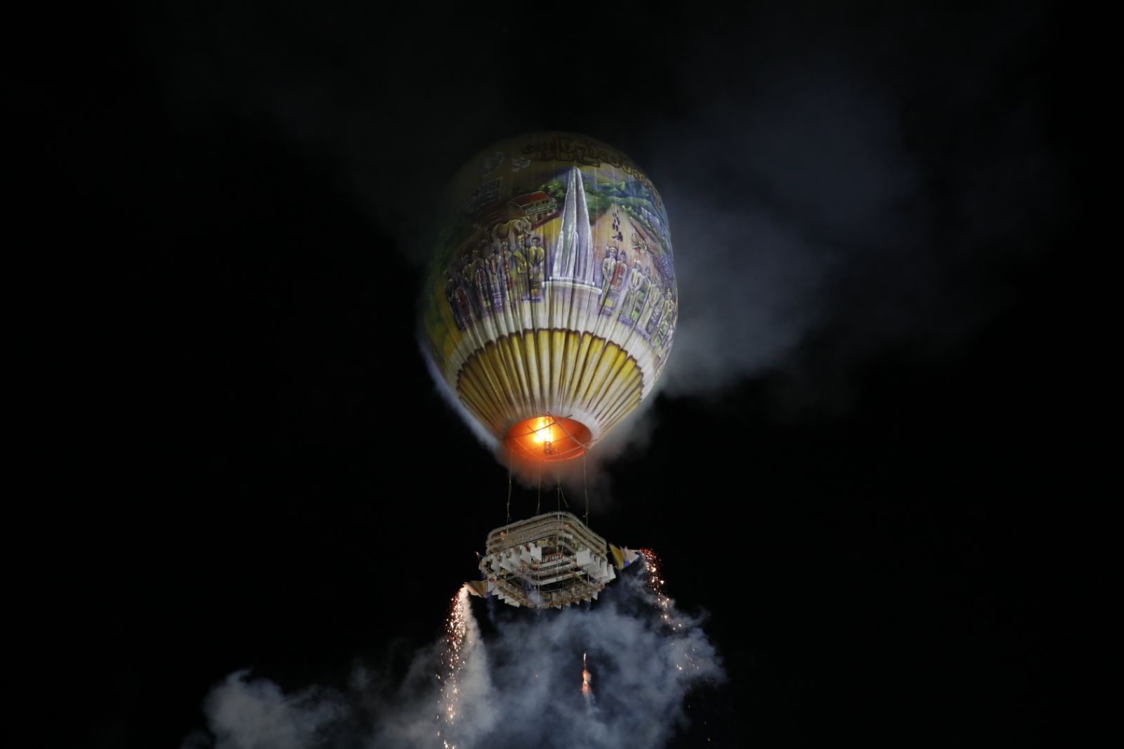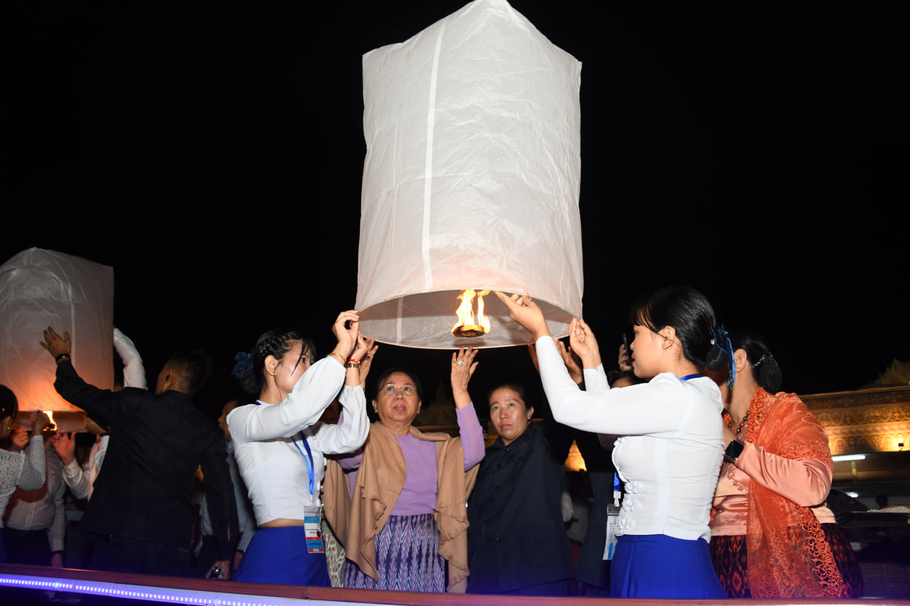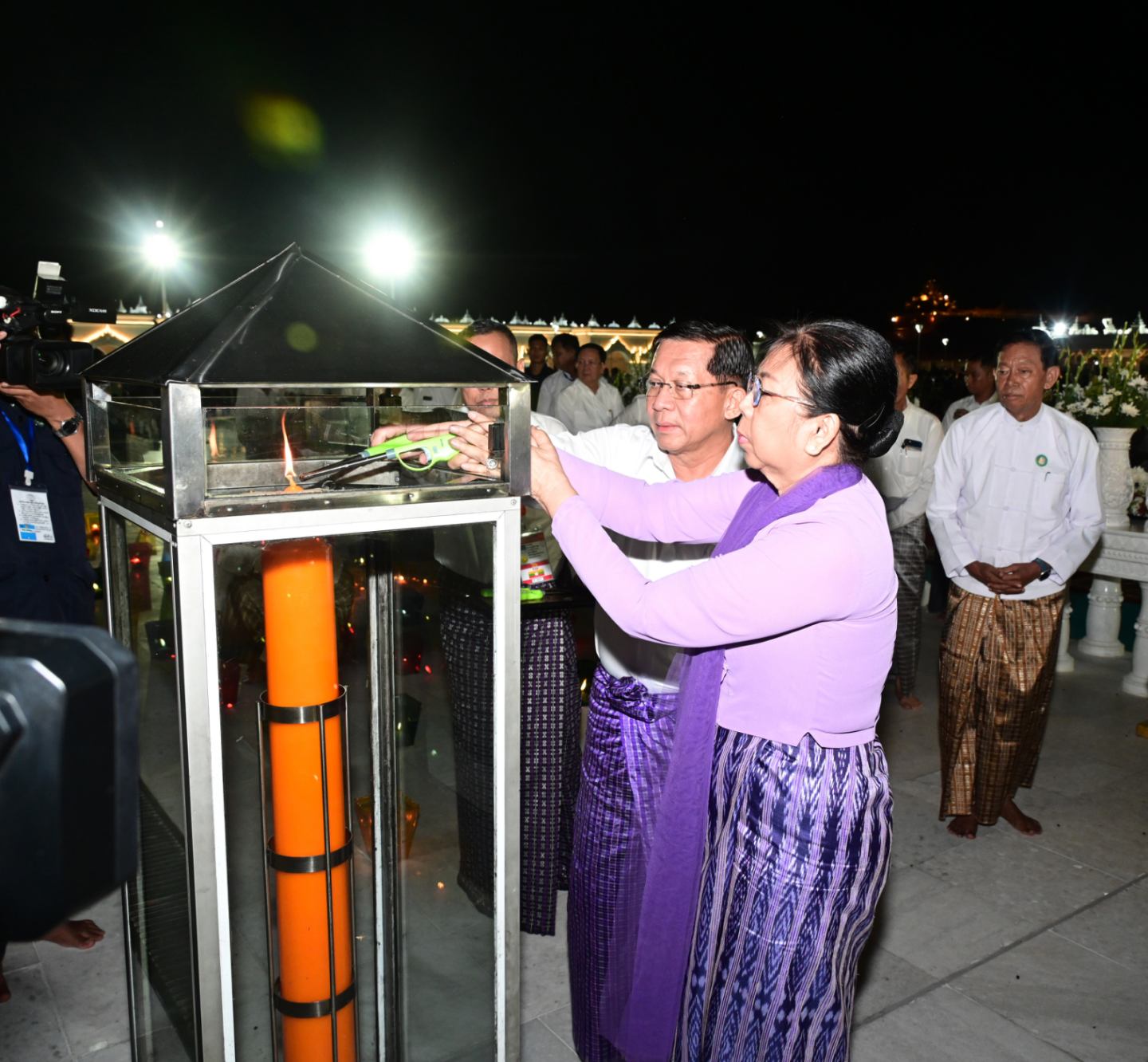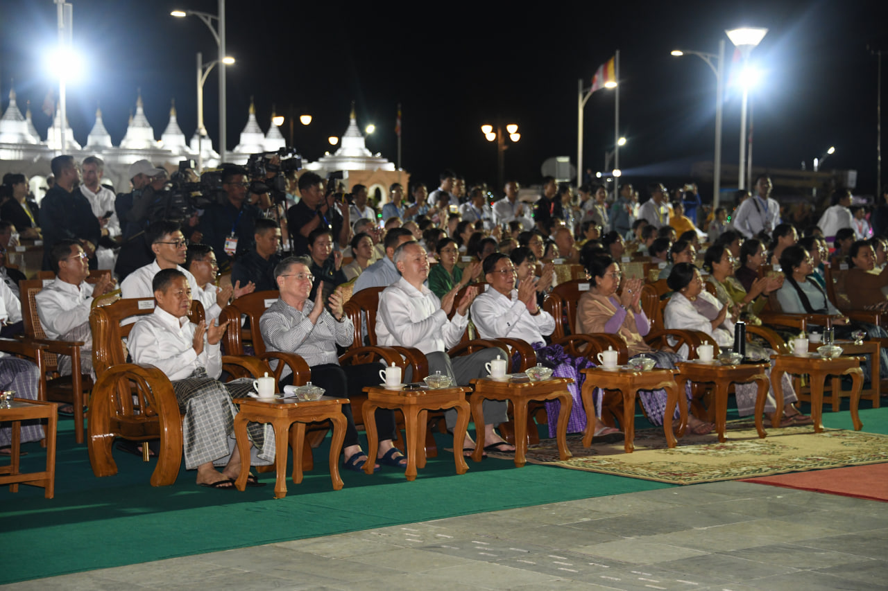 ထို့နောက် နိုင်ငံတော်ယာယီသမ္မတ နိုင်ငံတော်လုံခြုံရေးနှင့် အေးချမ်းသာယာ ရေးကော်မရှင်ဥက္ကဋ္ဌနှင့် ဇနီး၊ အခမ်းအနား တက်ရောက်လာကြသူများသည် စိန်နားပန် မီးပုံးပျံလွှတ်တင်မှုနှင့် ညမီးကြီးမီးပုံပျံများ လွှတ်တင်ပူဇော်ယှဉ်ပြိုင်နေမှုများကို ကြည့် ရှုအားပေးကြသည်။