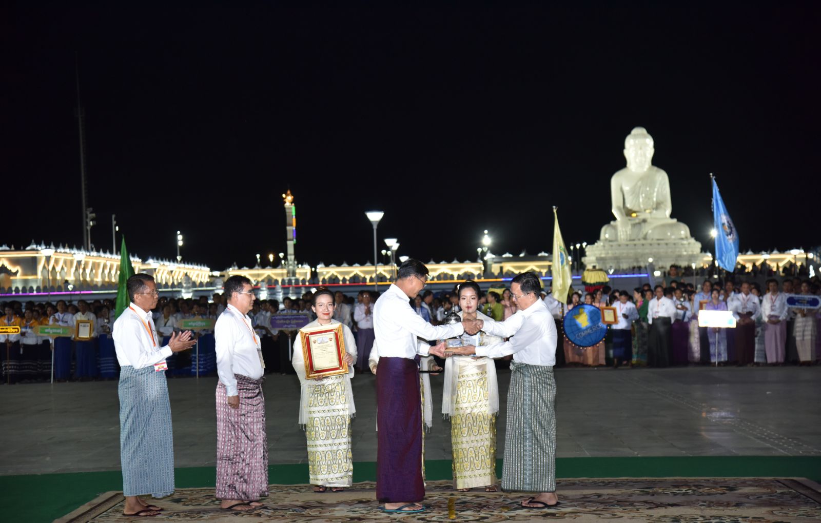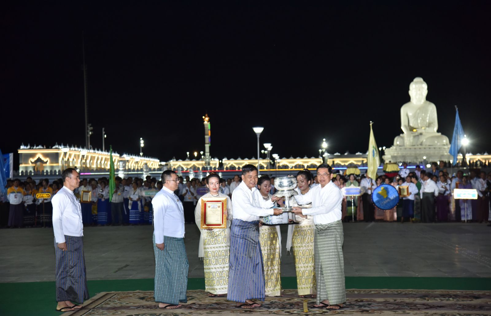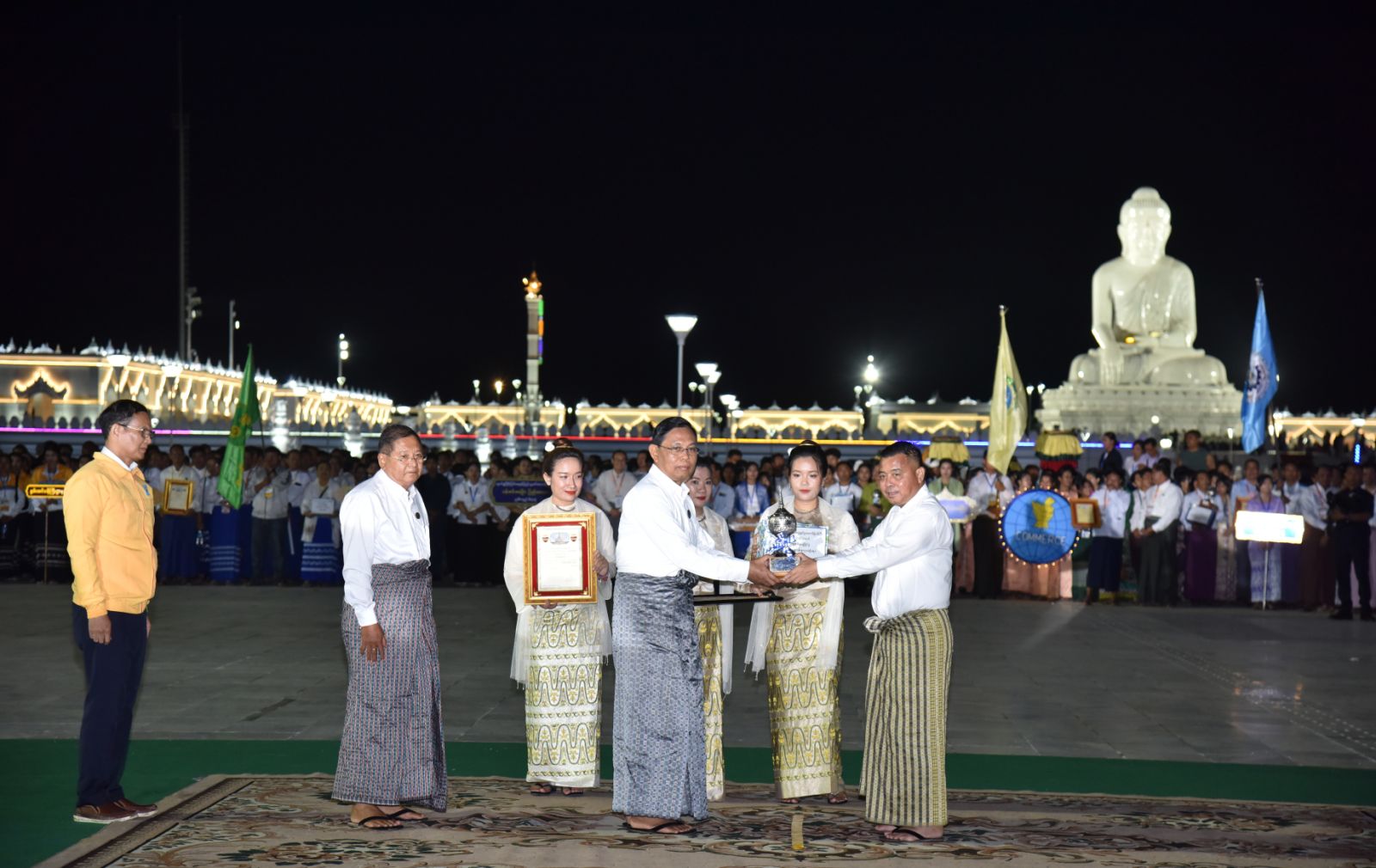 ယင်းနောက် နိုင်ငံတော်ယာယီသမ္မတ နိုင်ငံတော်လုံခြုံရေးနှင့် အေးချမ်းသာယာ ရေးကော်မရှင်ဥက္ကဋ္ဌက ညမီးကြီး(ညမီးကျည်)မီးပုံးပျံလွှတ်တင် ပူဇော်ပြိုင်ပွဲတွင် ပထမဆုရရှိသည့် နေပြည်တော်စည်ပင်သာယာရေးကော်မတီကိုယ်စားပြုအသင်း၊ စိန်နား ပန်မီးပုံးပျံလွှတ်တင်ပူဇော်ပြိုင်ပွဲတွင် ပထမဆုရရှိသည့် လူမှုဝန်ထမ်း၊ ကယ်ဆယ်ရေးနှင့် ပြန်လည်နေရာချထားရေးဝန်ကြီးဌာန ကိုယ်စားပြုအသင်းနှင့် မသိုး ရွှေကြာ သင်္ကန်း ရက်လုပ်ပူဇော်ပြိုင်ပွဲတွင် ပထမဆုရရှိသည့် မန္တလေးတိုင်း ဒေသကြီးကိုယ်စားပြု အမရရွှေပြည်ရက္ကန်းစင် အသင်းတို့အား ဆုဖလား၊ ဂုဏ်ပြု ချီးမြှင့်ငွေနှင့် ဂုဏ်ပြု မှတ်တမ်း လွှာများ ပေးအပ် ချီးမြှင့်သည်။