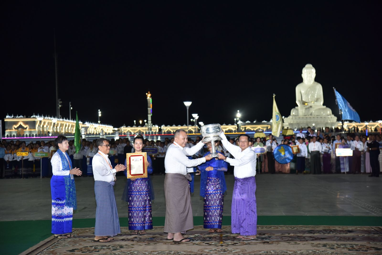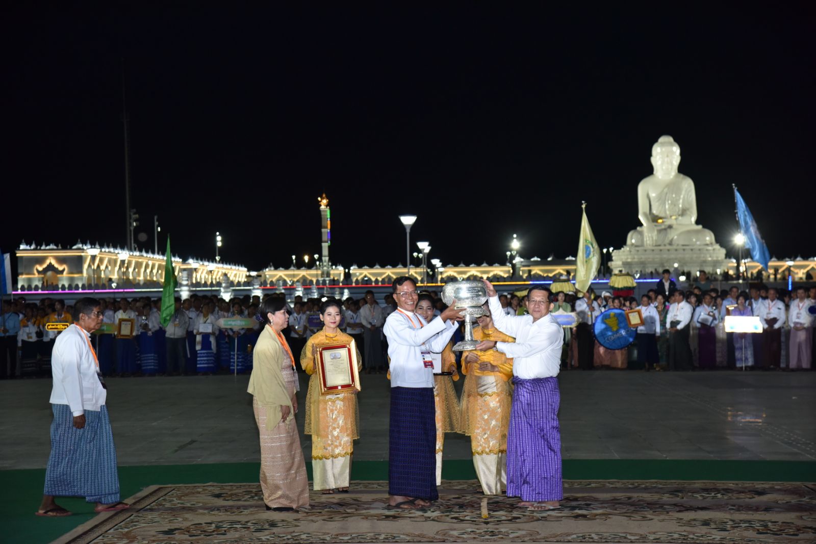 ယင်းနောက် ကော်မရှင်ဒုတိယဥက္ကဋ္ဌက ညမီးကြီး(ညမီးကျည်)မီးပုံးပျံလွှတ်တင် ပူဇော်ပြိုင်ပွဲ တွင် ဒုတိယဆုရရှိသည့် ပြည်ထဲရေးဝန်ကြီးဌာနကိုယ်စားပြုအသင်း၊ စိန်နားပန်မီးပုံးပျံ လွှတ်တင်ပူဇော်ပြိုင်ပွဲတွင် ဒုတိယဆုရရှိသည့် ဥပဒေရေးရာ ဝန်ကြီးဌာန ကိုယ်စားပြုအသင်းနှင့် မသိုးရွှေကြာ သင်္ကန်းရက်လုပ် ပူဇော်ပြိုင်ပွဲတွင် ဒုတိယဆုရရှိသည့် ကချင်ပြည်နယ်ကိုယ်စားပြု မနောမြေရက္ကန်းစင် အသင်းတို့အား ဆုဖလား၊ ဂုဏ်ပြု ချီးမြှင့်ငွေနှင့် ဂုဏ်ပြု မှတ်တမ်းလွှာများ ပေးအပ် ချီးမြှင့်သည်။