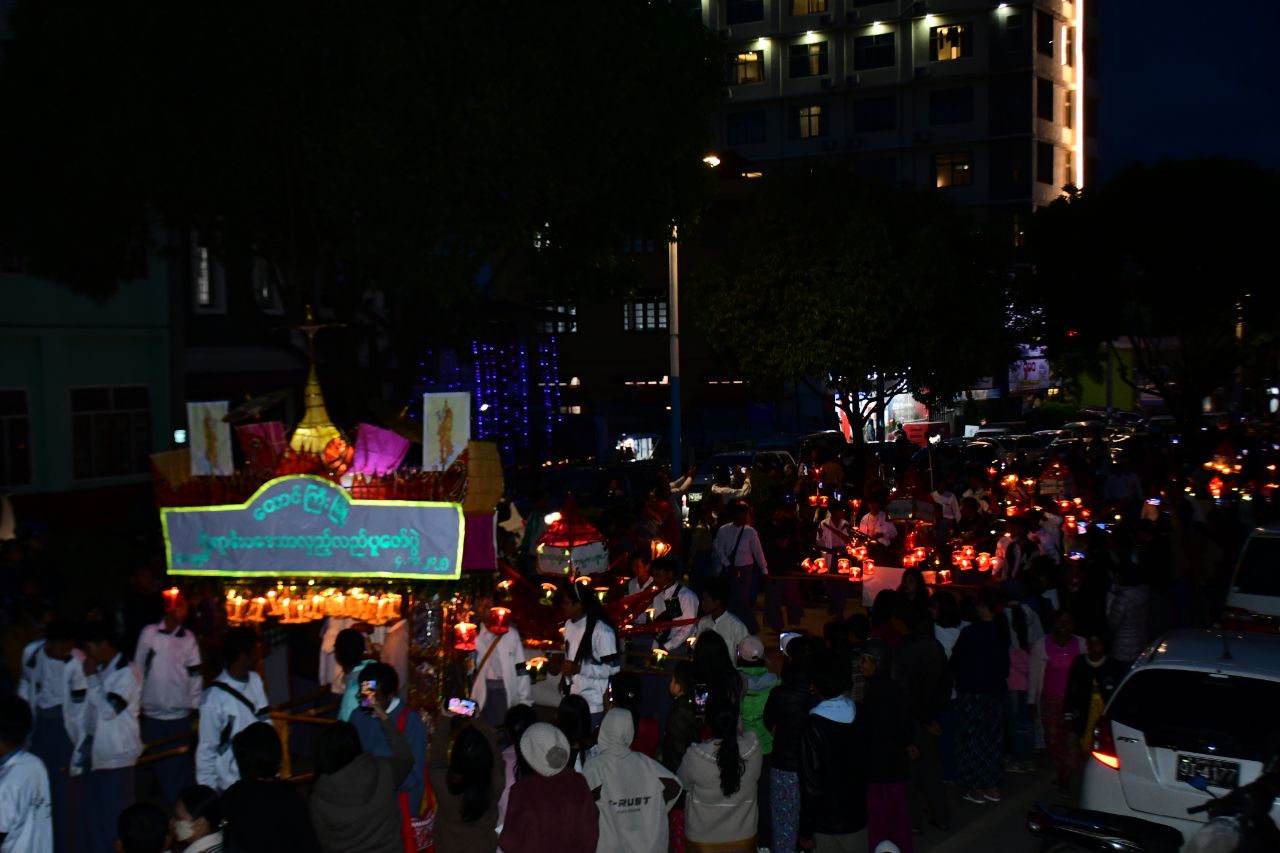 ရှမ်းပြည်နယ်(တောင်ပိုင်း)၊ တောင်ကြီးမြို့ရှိ တောင်ကြီးတန်ဆောင်တိုင် ပွဲတော်ကို စည်ကားသိုက်မြိုက်စွာဖြင့် ကျင်းပလျက်ရှိပြီး အဆိုပါပွဲတော်၌ မီးပုံးပျံ ပြိုင်ပွဲကြီးကို နေ့မီးနှင့် ညမီးဟူ၍ နှစ်မျိုးခွဲကာ ပြိုင်ပွဲများ ကျင်းပပေးလျက်ရှိသည်။ ယင်းမီးပုံးပျံပြိုင်ပွဲကြီးတွင် နေ့ပိုင်းအလှလွှတ် မီးပုံးပျံများသည် အများအားဖြင့် တိရစ္ဆာန်ရုပ်ပုံများဖြစ်ပြီး နေ့လွှတ်အရုပ်ပြိုင်ပွဲ၌ အရုပ်ခြေနှစ်ချောင်း၊ အရုပ်ခြေ လေးချောင်းများဖြစ်ကာ ညလွှတ်မီးပုံးပျံများ၌လည်း ညမီးကြီးနှင့် စိန်နားပန်ဟူ၍ နှစ်မျိုးရှိကြောင်း၊ ညမီးကြီးတွင် မီးပုံးပျံအောက်ဆွဲ၌ ယမ်းခွေများ ပါဝင်ပြီး မီးပုံးပျံ ပျံတက်သည့်ကာလအတွင်း မီးရှူးမီးပန်းများ ပစ်လွှတ်ကာ ညမြင် ကွင်းကို အလှဆင်ကြကြောင်းနှင့် စိန်နားပန်သည် မီးပုံးပျံအပြင် ကိုယ်ထည်ပေါ်နှင့် အောက်ဆွဲ၌ မီးပုံးအရောင် အမျိုးမျိုးနှင့် ရုပ်ပုံများ၊ စာလုံးများကို ပုံဖော်ကာ လွှတ်တင် ကြသည့် မီးပုံးအမျိုးအစားဖြစ်ကြောင်း သိရှိရပြီး အဆိုပါပွဲတော်ကြီးသို့ အနယ်နယ် အရပ်ရပ်မှ မိဘပြည်သူများက အေးချမ်းပျော်ရွှင်စွာဖြင့် ပါဝင်ဆင်နွှဲလျက်ရှိသည်။
