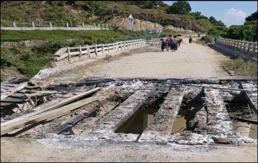 ထိုသို့လုပ်ဆောင်လျက်ရှိရာ စစ်ကိုင်းတိုင်းဒေသကြီး၊ ကလေးမြို့နှင့် မော်လိုက်မြို့ ကို ဆက်သွယ်ထားသည့် ကလေး-မော်လိုက် သွားကားလမ်းမပေါ်ရှိ အများပြည်သူ သွားလာအသုံးပြုလျက်ရှိသော အရှည် ၃၀၀ ပေ၊ အကျယ် ၁၈ ပေရှိ သံကူကွန်ကရစ် အမျိုးစား ပလူဇဝ တံတားအား PDF အမည်ခံအကြမ်းဖက်သမားများက အောက်တိုဘာ ၃၀ ရက်တွင် မီးရှို့ဖျက်ဆီးခဲ့သဖြင့် တံတား၏ တောင်ဘက်ခြမ်းကြမ်းခင်း ၁၀ ပေခန့် မီးလောင်ပျက်စီးခဲ့ရာ အများပြည်သူများ ဖြတ်သန်းသွားလာနိုင်ခြင်းမရှိဘဲ အခက်အခဲ များ ဖြစ်ပေါ်လျက်ရှိကြောင်း သိရှိရသည်။