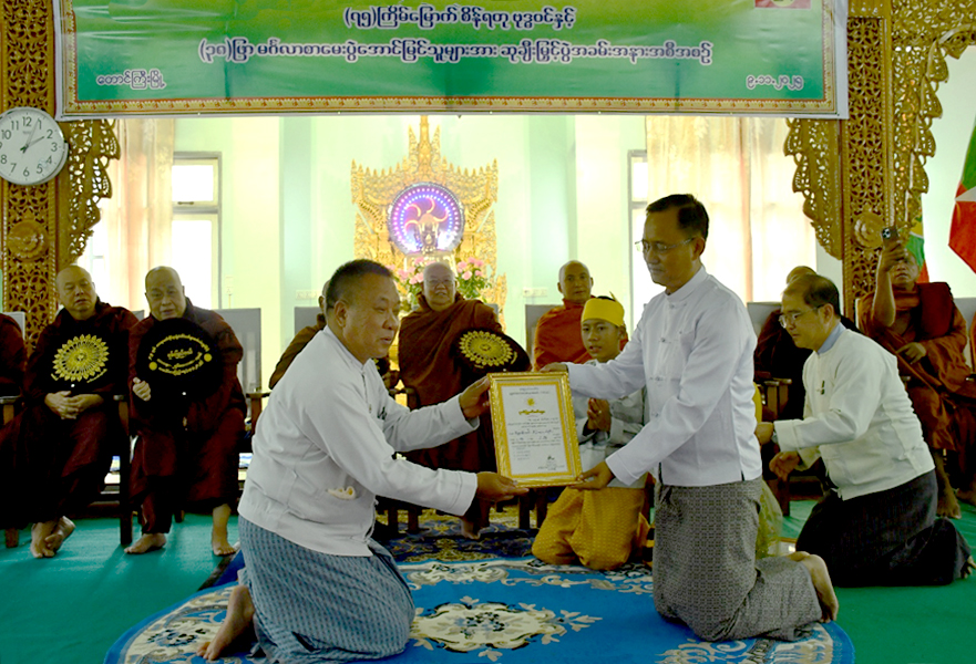 ယင်းနောက် တိုင်းမှူးနှင့်တာဝန်ရှိသူများက အလှူရှင်များအား ဂုဏ်ပြုမှတ်တမ်းလွှာများ ပြန်လည်ပေးအပ်ပြီး စာဖြေဌာနအလိုက် အကြီးတန်း ၊ အလတ်တန်း ၊ အငယ်တန်းတို့တွင် ပထမဆု၊ ဒုတိယဆု ၊ တတိယဆု ရရှိသူများနှင့် အထူးအောင်မြင်သူများကို ဆုများပေးအပ်ချီးမြှင့်ခဲ့ကြကြောင်း သတင်းရရှိသည်။
