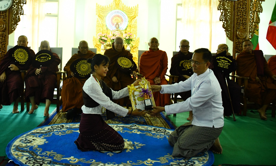 ဗုဒ္ဓဘာသာကလျာဏယုဝအသင်း (YMBA) ဗဟိုမှ ကြီးမှူး၍ ရှမ်းပြည်နယ် ဗုဒ္ဓဘာသာ ကလျာဏယုဝအသင်း(YMBA)မှ ကျင်းပသည့် (၇၅)ကြိမ်မြောက် စိန်ရတုဗုဒ္ဓဝင်နှင့် (၃၈)ဖြာမင်္ဂလာ တရားတော်စာမေးပွဲ ဖြေဆိုပွဲ၌ အောင်မြင်စွာဖြေဆိုခဲ့ကြသည့် ကျောင်းသား/ ကျောင်းသူများအား ဆုချီးမြှင့်ပွဲကို ယနေ့နေ့လယ်ပိုင်းတွင် ရှမ်းပြည်နယ်(တောင်ပိုင်း)၊ ကန်အောက်ရပ်ကွက်၊ သာသနာ လင်္ကာရကမ္ဗောဇ၊ သာသနာ့ဗိမာန် (၅)ထပ်ဆောင်၌ ပြုလုပ်ရာ တောင်ကြီးမြို့၊ စွန်းလွန်းဂူ ကျောင်းတိုက် ဦးစီးပဓာန နာယက ဆရာတော် နိုင်ငံတော်ဩဝါဒစရိယ အဂ္ဂမဟာ ပဏ္ဍိတ မဟာကမ္မဌာနစရိယ ဘဒ္ဒန္တအဂ္ဂဓမ္မာဘိဝံသ အမှူးပြုသော သံဃာတော်များကြွရောက် တော်မူကြ ပြီး အရှေ့ပိုင်းတိုင်းစစ်ဌာနချုပ် တိုင်းမှူး ဗိုလ်မှူးချုပ် ကျော်နိုင်ဦးနှင့် တာဝန်ရှိသူများ၊ ပြည်နယ် ဝန်ကြီးများ ၊ ဌာနဆိုင်ရာ တာဝန်ရှိသူများ၊ ရှမ်းပြည်နယ်ဗုဒ္ဓဘာသာ ကလျာဏယုဝအသင်းမှ တာဝန်ရှိသူများ ၊ ကျောင်းသား / ကျောင်းသူများ နှင့်ကျောင်းသားမိဘများတက်ရောက်ကြသည်။