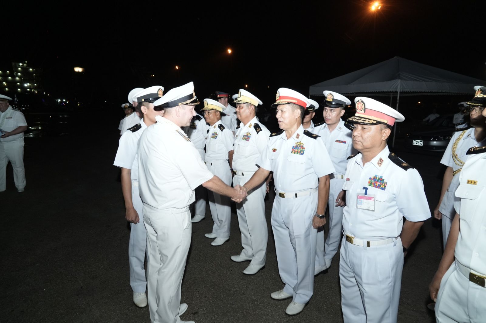 ရုရှားရေတပ် Pacific Fleet မှ ဖရီဂိတ်စစ်ရေယာဉ် Marshal Shaposhnikov ၊ ကော်ဗက်စစ် ရေယာဉ် Gremyashchiy နှင့်ထောက်ပံ့ရေးရေယာဉ် Boris Butoma တို့သည် မြန်မာနိုင်ငံသို့ တတိယအကြိမ် မြန်မာ-ရုရှားနှစ်နိုင်ငံရေကြောင်းလုံခြုံရေးဆိုင်ရာ လေ့ကျင့်ခန်း ဆောင်ရွက်ရန်နှင့် ချစ်ကြည်ရေးခရီးလည်ပတ်ရန် ယနေ့ညနေပိုင်းတွင် ရန်ကုန်မြို့၊ သီလဝါဆိပ်ကမ်းသို့ ရောက်ရှိလာရာ တပ်မတော်(ရေ)မှ အရာရှိကြီးများ၊ အရာရှိ၊ စစ်သည်များ၊ မြန်မာနိုင်ငံသို့ ချစ်ကြည်ရေးခရီး ရောက်ရှိနေသည့် ရုရှားရေတပ်မှ ဒုတိယရေတပ်ဦးစီးချုပ် ဒုတိယဗိုလ်ချုပ်ကြီး Aleksei Anatolievich Kiiashko ၊ မြန်မာနိုင်ငံဆိုင်ရာ ရုရှားစစ်သံမှူးနှင့် တာဝန်ရှိသူများက ကြိုဆိုနှုတ်ဆက် ကြသည်။