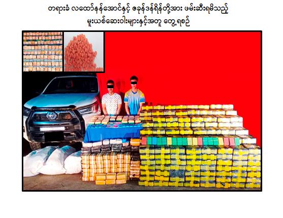 ဖြစ်စဉ်မှာ လုံခြုံရေးတပ်ဖွဲ့ဝင်များပါဝင်သော ပူးပေါင်းအဖွဲ့သည် အောက်တိုဘာလ ၃၀ ရက် မွန်းလွဲ ၂ နာရီ ၃၀ မိနစ်ခန့်တွင် ဝိုင်းမော်မြို့နယ်၊ နတ်မြစ်ခတံတားအနီး၌ သတင်းအရ စောင့်ဆိုင်း စဉ် လထော်နန်အောင်(ဘ) ဦးလထော်ပေါလု မောင်းနှင်ပြီး ဇခုန်ဒန်ရိန်(ဘ) ဦးဇခုန်ထွန်းဒန် လိုက်ပါလာသော TOYOTA HILUX REVO မော်တော်ယာဉ်အား ရပ်တန့်စစ်ဆေးရှာဖွေရာ ယာဉ်ပေါ်မှ ဘိန်းဖြူ ၄၇ ဒသမ ၅၂ ကီလို (ခန့်မှန်းတန်ဖိုး ငွေကျပ် ၁ ဒသမ ၁၈၈ ဘီလီယံ)နှင့် စိတ်ကြွဆေးပြား ၇ ဒသမ ၈ သိန်း(ခန့်မှန်းတန်ဖိုးငွေကျပ် ၁ ဒသမ ၁၇ ဘီလီယံ) စုစုပေါင်း ခန့်မှန်းတန်ဖိုးငွေကျပ် ၂ ဒသမ ၃၅၈ ဘီလီယံတန်ဖိုးရှိ မူးယစ်ဆေးဝါးများကို ဖမ်းဆီးရမိခဲ့ကြောင်း သိရှိရသည်။