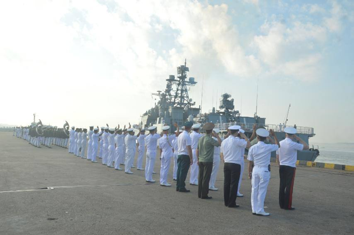 ပြည်ထောင်စုသမ္မတမြန်မာနိုင်ငံတော်သို့ တတိယအကြိမ် မြန်မာ- ရုရှား ရေကြောင်းလုံခြုံရေး ဆိုင်ရာ လေ့ကျင့်ခန်းဆောင်ရွက်ရန်နှင့် ချစ်ကြည်ရေးခရီးလည်ပတ်ရန် နိုဝင်ဘာလ ၁၀ ရက်တွင် ရန်ကုန်မြို့ သို့ ရောက်ရှိနေသော ရုရှားရေတပ် Pacific Fleet မှ စစ်ရေယာဉ် ၃ စီးတို့သည် ပင်လယ်ပြင်၌ လက်တွေ့လေ့ကျင့်ခန်းများဆောင်ရွက်ရန် တပ်မတော်(ရေ)မှ စစ်ရေယာဉ်များနှင့် အတူ နိုဝင်ဘာ ၁၃ ရက်၊ နံနက်ပိုင်းတွင် ရန်ကုန်မြို့၊ သီလဝါဆိပ်ကမ်းမှ လေ့ကျင့်ခန်းဧရိယာသို့ထွက်ခွာရာ တပ်မတော်(ရေ) မှအရာရှိကြီးများ၊ အရာရှိ၊ စစ်သည်များ၊ ချစ်ကြည်ရေးခရီးရောက်ရှိနေသည့် ရုရှားရေတပ်မှ ဒုတိယ ရေတပ်ဦးစီးချုပ် ဒုတိယဗိုလ်ချုပ်ကြီး Aleksei Anatolievich Kiiashko၊ မြန်မာနိုင်ငံဆိုင်ရာ ရုရှားစစ်သံ မှူးနှင့်တာဝန်ရှိသူများက ပို့ဆောင်နှုတ်ဆက်ကြသည်။