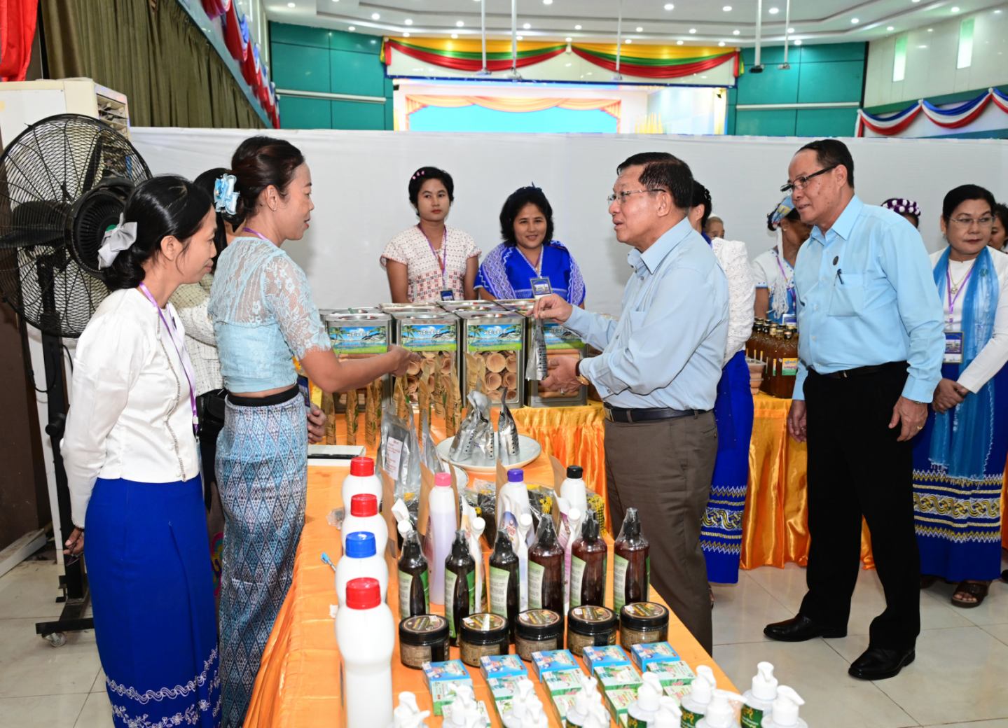 ထို့နောက် နိုင်ငံတော်ယာယီသမ္မတ နိုင်ငံတော်လုံခြုံရေးနှင့် အေးချမ်းသာယာ ရေးကော်မရှင် ဥက္ကဋ္ဌ သည် ခင်းကျင်းပြသထားသည့် ကရင်ပြည်နယ်အတွင်းရှိ အသေးစား၊ အငယ်စားနှင့် အလတ်စားစီးပွားရေး (MSME) လုပ်ငန်းများမှ ထွက်ရှိသည့် ထုတ်ကုန်ပစ္စည်းများအား စိတ်ပါဝင်စားစွာဖြင့် လှည့်လည်ကြည့်ရှုပြီး တာဝန်ရှိ သူများ၏ တင်ပြချက်များ အပေါ်လိုအပ်သည်များလမ်းညွှန်မှာကြားသည်။