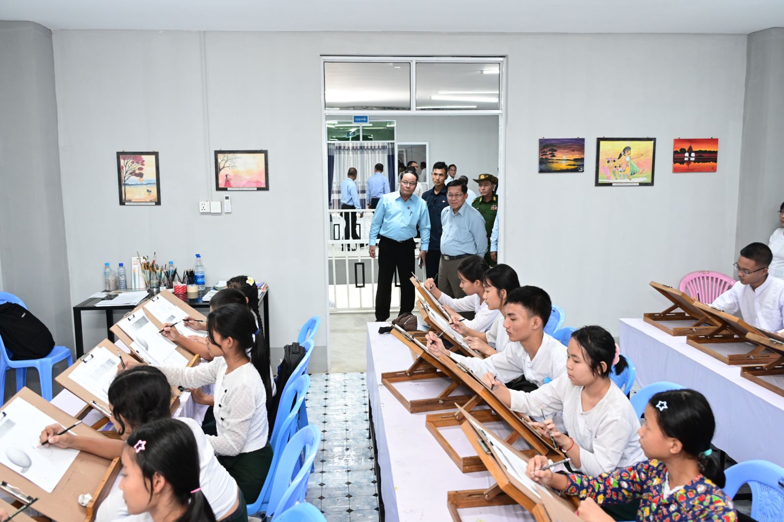 ထို့နောက် နိုင်ငံတော်ယာယီသမ္မတ နိုင်ငံတော်လုံခြုံရေးနှင့် အေးချမ်းသာယာ ရေးကော်မရှင် ဥက္ကဋ္ဌနှင့်အဖွဲ့ဝင်များသည် လူငယ်စင်တာအတွင်း လူငယ်များ Indoor Game များ လေ့ကျင့်နေမှု၊ လူငယ်စကားဝိုင်း ပြုလုပ်နေမှု၊ အိမ်တွင်းမှု လုပ်ငန်းများ သင်ကြားဆောင်ရွက်နေမှု၊ ဂီတခန်းအတွင်း ဂီတပညာများသင်ကြားပေး နေမှု၊ ပန်းချီသင်တန်း သင်ကြားပို့ချပေးနေမှု၊ ကွန်ပျူတာနည်းပညာများ သင်ကြား ပြသပေးနေမှု၊ စာကြည့်တိုက်အတွင်း လူငယ်များစာပေဖတ်ရှုလေ့လာနေမှုများနှင့် အိပ်ခန်းများနှင့် စားသောက်ခန်းတို့အတွင်းလှည့်လည်ကြည့်ရှုစစ်ဆေးပြီး တာဝန်ရှိသူ များ၏ တင်ပြချက်များအပေါ် လိုအပ်သည်များလမ်းညွှန်မှာကြားသည်။