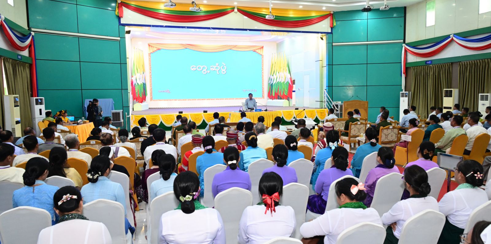 ပြည်ထောင်စုသမ္မတမြန်မာနိုင်ငံတော် ယာယီသမ္မတနိုင်ငံတော်လုံခြုံရေးနှင့် အေးချမ်းသာယာရေးကော်မရှင် ဥက္ကဋ္ဌ ဗိုလ်ချုပ်မှူးကြီး မင်းအောင်လှိုင် ဘားအံမြို့ရှိ ပြည်နယ်အဆင့်ဌာနဆိုင်ရာတာဝန်ရှိသူများ၊ မြို့မိ မြို့ဖများနှင့်တွေ့ဆုံ၍ ဒေသဖွံ့ဖြိုးတိုးတက်ရေးဆိုင်ရာများဆွေးနွေး