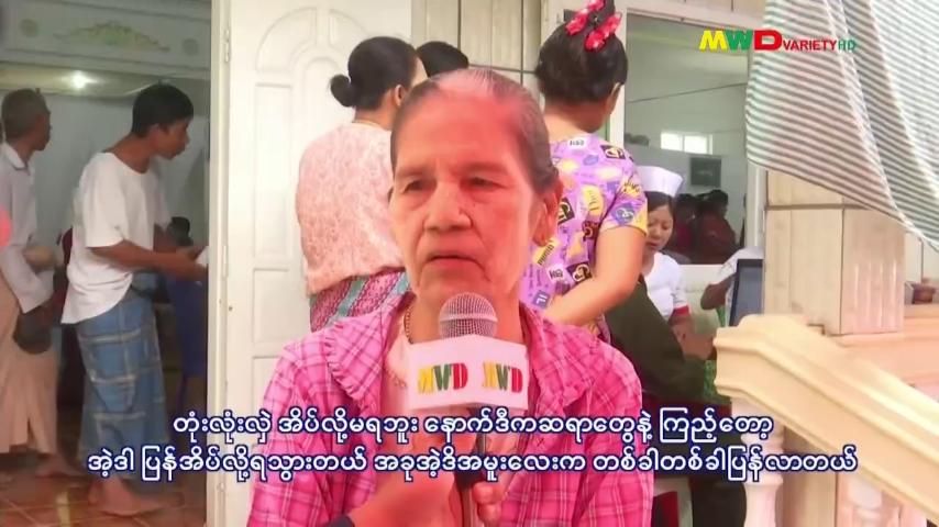 ၂။ အထွေထွေမူးတာပေါ့ ကျီးပေါင်းဖြစ်ဖူးလို့ မူးလို့အဲတာလာပြတာ။ ဆေးကအရင်တုံး က သောက်တယ်ပေါ့ ။အခုကဖြတ်လိုက်တော့ ဆရာကြီးက စွဲသောက်ရမယ့်ဆေးကို ညွှန်ပြ လိုက်တယ်ပေါ့နော်။ သေသေချာချာလည်းမေးတယ်။ တစ်ချို့ဆိုလို့ရှိရင် ကျန်းမာရေးမ ကောင်းဘူး ကိုယ်ကဆေးခန်းပြချင်တာတောင်မှ ငွေရေးကြေးရေးအခက်အခဲ အခုကမလွယ် ဘူးလေ တစ်ခေါက်တစ်ခေါက်ခရီးစရိတ်ကအစ မလွယ်တဲ့ အခါကျတော့ သွားရတာအဆင် မပြေဘူး။ အခုလိုမျိုးလာရောက်တဲ့ အခါကျတော့ ငွေရေကြေးရေအတွက် ဘာမှမပူရဘူး။ အကုန်လုံးအဆင်ပြေတယ်ပေါ့နော်။ အခုလိုမျိုး နယ်လှည့်ဆေးကုသရေးအဖွဲ့ကို စေလွှတ် ပေးတဲ့ တာဝန်ရှိတဲ့ အကြီးအကဲတွေကိုရော လာရောက်ပြီးတော့ ကုသပေးတဲ့ ဆရာတွေအ ကုန်လုံးရော တာဝန်ရှိသူအကုန်လုံး အားလုံးကို ကျေးဇူးတင်ပါတယ်လို့ ပြည်သူလူထုတွေရဲ့ ကိုယ်စားရော ဝန်ထမ်းတွေရဲ့ ကိုယ်စားရော အားလုံးကို ကျေးဇူးတင်ပါတယ်။