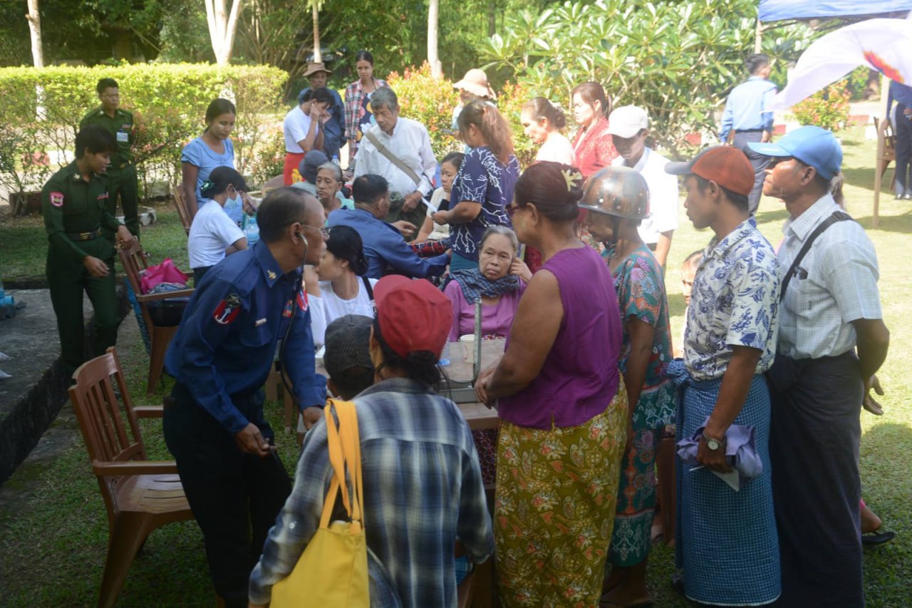 ထိုသို့ဆောင်ရွက်ပေးရာတွင် ဆေးကုသမှုဆိုင်ရာရောဂါ ၇၆ ဦး၊ ခွဲစိတ်ရောဂါ ၃၃ ဦး၊ သားဖွားမီးယပ်ရောဂါ ၁၀ ဦး၊ ကလေးရောဂါ ၁၅ ဦး၊ အရိုးရောဂါ ၆၅ ဦး၊ နား၊ နှာခေါင်း၊ လည်ချောင်းရောဂါ ၂၆ ဦး၊ မျက်စိရောဂါ ၁၂၃ ဦးနှင့် သွားနှင့်ခံတွင်းရောဂါ ၁၆ ဦးတို့ကို လိုအပ်သည့် ဆေးဝါးကုသမှုများ ဆောင်ရွက်ပေးသည်။ ၎င်းတို့အနက် မျက်စိခွဲစိတ်လူနာ ၁၀ ဦး၊ ဓာတ်မှန်ရိုက်လူနာ ၂၄ ဦး၊ အာထရာဆောင်းဖြင့် စမ်းသပ် စစ်ဆေးလူနာ ၃၀ ဦး၊ ECG စက်ဖြင့် နှလုံးစမ်းသပ်လူနာ ၂၃ ဦးနှင့် ဓာတ်ခွဲစမ်းသပ်လူနာ ၄၁ ဦးတို့ကို ရောဂါရှာဖွေစမ်းသပ်ကုသပေးခြင်းများ ဆောင်ရွက် ပေးသည်။