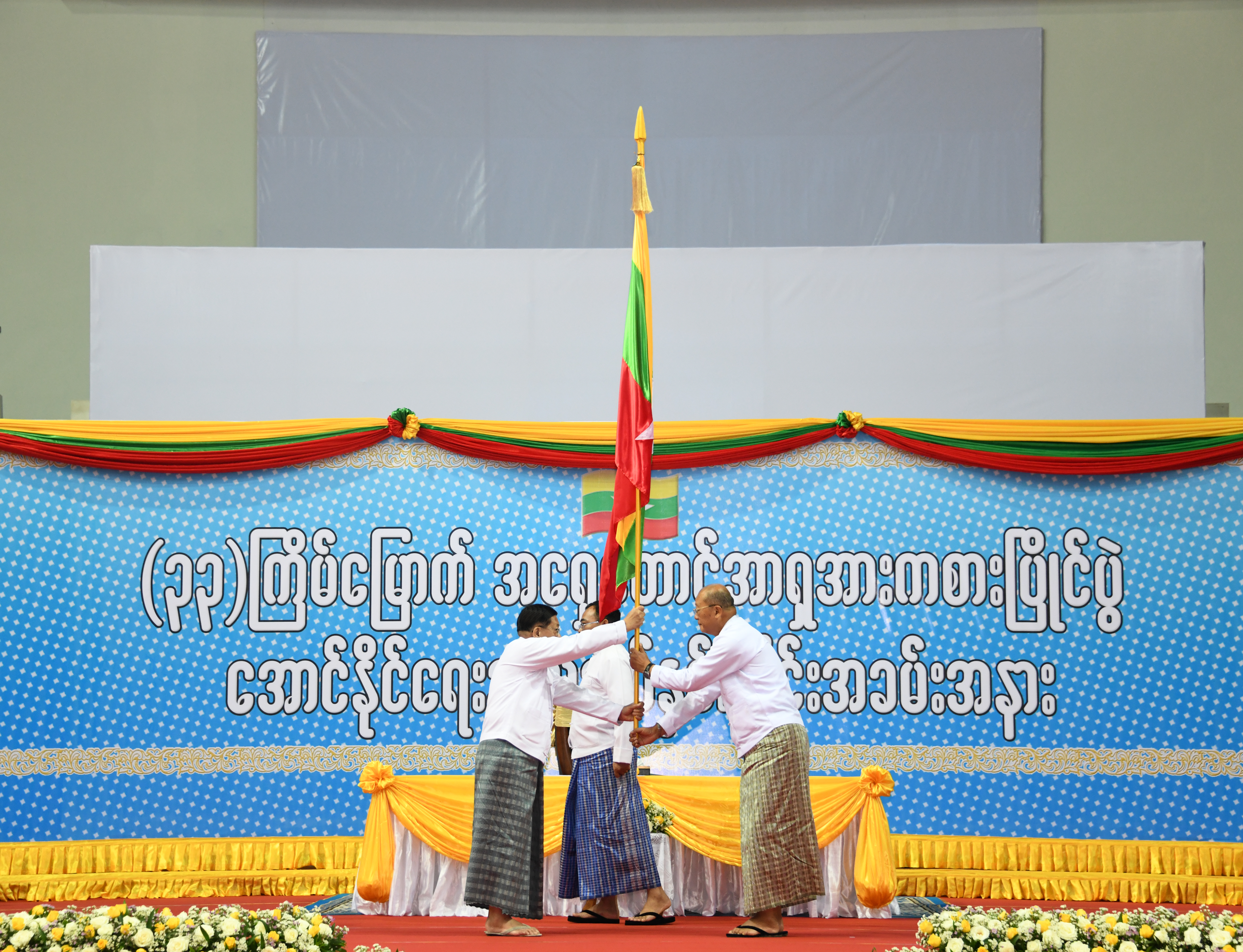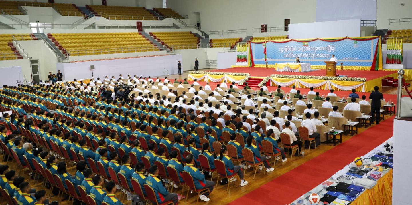 (၃၃)ကြိမ်မြောက် အရှေ့တောင်အာရှအားကစားပြိုင်ပွဲသို့ ဝင်ရောက်ယှဉ်ပြိုင်မည့် မြန်မာအားကစားအဖွဲ့အား အောင်နိုင်ရေးအလံအပ်နှင်းပွဲအခမ်းအနားကျင်းပ ပြည်ထောင်စုသမ္မတ မြန်မာနိုင်ငံတော်ယာယီသမ္မတ နိုင်ငံတော်လုံခြုံရေးနှင့် အေးချမ်း သာယာရေးကော်မရှင်ဥက္ကဋ္ဌ ဗိုလ်ချုပ်မှူးကြီးမင်းအောင်လှိုင် တက်ရောက် အမှာ စကားပြောကြား