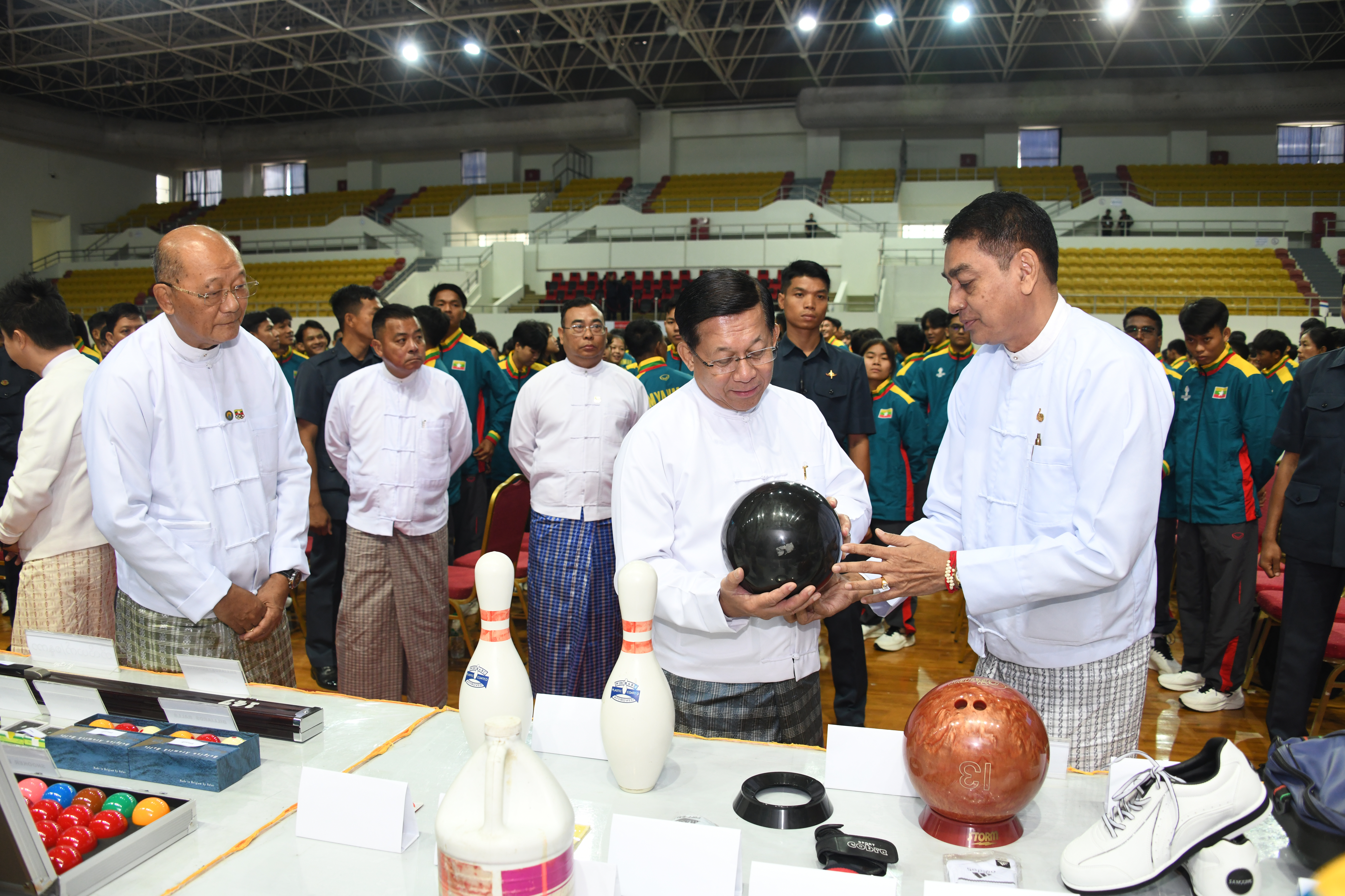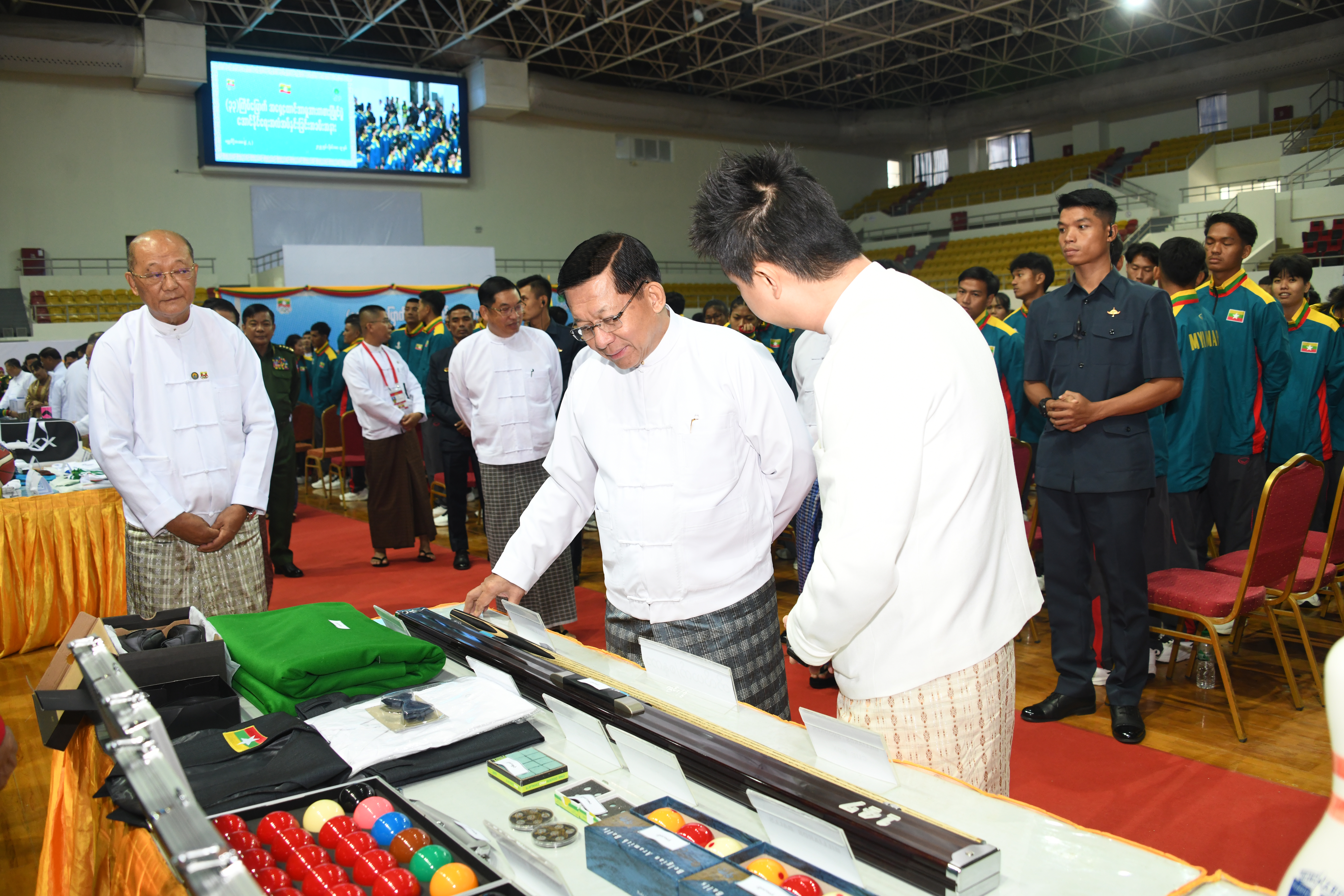 ယင်းနောက် နိုင်ငံတော်ယာယီသမ္မတ နိုင်ငံတော်လုံခြုံရေးနှင့် အေးချမ်းသာယာ ရေးကော်မရှင် ဥက္ကဋ္ဌ က (၃၃)ကြိမ်မြောက် အရှေ့တောင်အာရှအားကစားပြိုင်ပွဲသို့ ဝင်ရောက်ယှဉ်ပြိုင်မည့် အားကစားအဖွဲ့များအား လိုက်လံနှုတ်ဆက်အားပေးစကား ပြောကြားပြီး အားကစားအဖွဲ့များအသုံးပြုမည့် အားကစားနည်းများအလိုက် အသုံး အဆောင်ပစ္စည်းများအား ပြခန်းတစ်ခုချင်းစီအလိုက် လိုက်လံကြည့်ရှုစစ်ဆေးကာ တာဝန်ရှိသူများ၏ တင်ပြချက်များအပေါ် လိုအပ်သည်များလမ်းညွှန်မှာကြား ဖြည့် ဆည်း ဆောင်ရွက်ပေးခဲ့ကြောင်းသတင်းရရှိသည်။