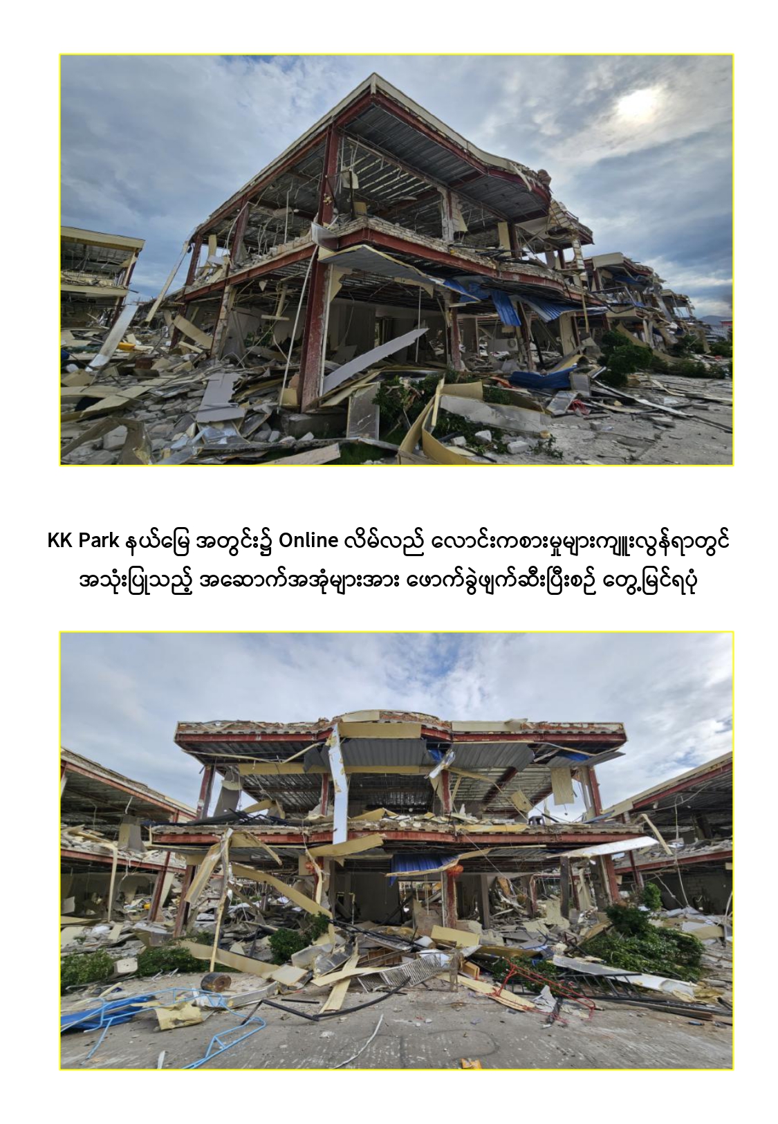 ယနေ့ ညနေ ၆ နာရီအထိ မြဝတီ-မဲ့ထော်သလေး (KK Park) နယ်မြေအတွင်း Online လိမ်လည်လောင်းကစားမှုများကျူးလွန်ရာတွင် အသုံးပြုလျက်ရှိသည့် အဆောက် အဦများ ၆၃၅ လုံးရှိသည့်အနက် ၁၇၀ လုံးကို ဖြိုချဖျက်ဆီးပြီးစီးပြီဖြစ်ကြောင်းနှင့် ကျန်ရှိ နေသေးသည့် အဆောက်အအုံ ၄၆၅ လုံးကို ဆက်လက်ဖြိုချဖျက်ဆီးလျက်ရှိသည်။