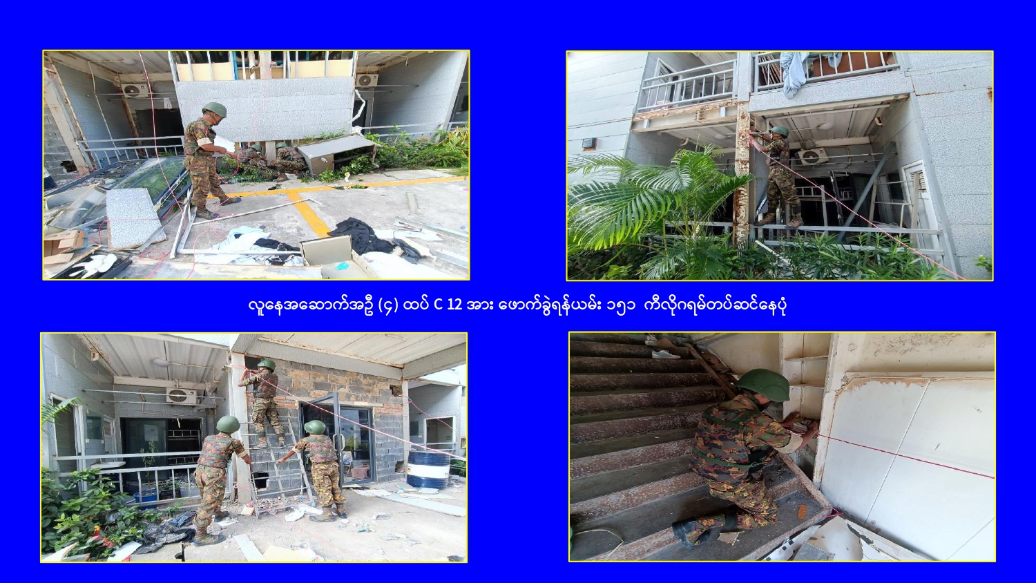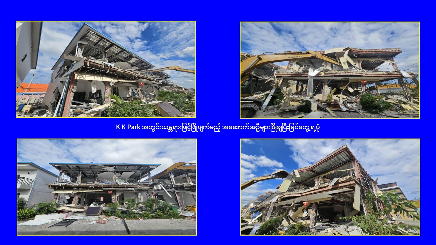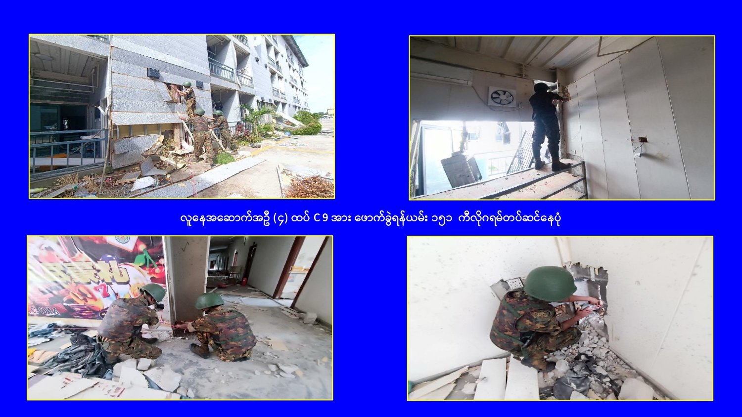 မြဝတီ-မဲထော်သလေး (KK Park) နယ်မြေအတွင်း Online လိမ်လည်လောင်း ကစားမှုများကျူးလွန်ရာတွင် အသုံးပြုလျက်ရှိသည့် အဆောက်အအုံ ၆၃၅ လုံး ရှိသည့် အနက် ယနေ့တွင် ၁၄ လုံးကို ဆက်လက်ဖြိုချဖျက်ဆီးခဲ့ရာ ယနေ့အထိ တရားမဝင် အဆောက်အအုံ ၁၉၆ ဖြိုချဖျက်ဆီးခဲ့ပြီးဖြစ်ကြောင်းနှင့် ကျန်ရှိနေသေးသည့် တရားမဝင် အဆောက်အအုံများကို ဆက်လက်ဖြိုချဖျက်ဆီးလျက်ရှိကြောင်း သိရှိရသည်။