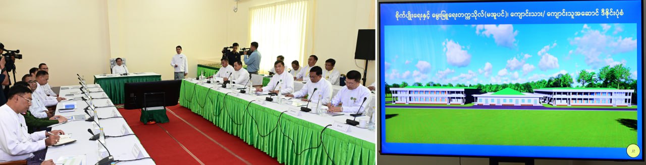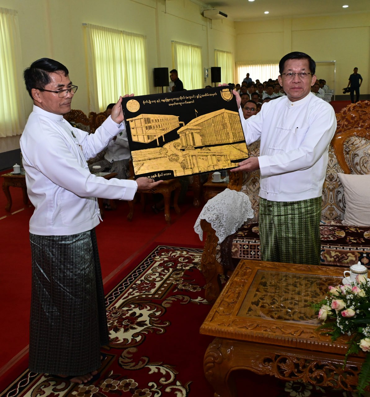 ပြည်ထောင်စုသမ္မတမြန်မာနိုင်ငံတော် ယာယီသမ္မတနိုင်ငံတော်လုံခြုံရေးနှင့် အေးချမ်းသာယာရေးကော်မရှင်ဥက္ကဋ္ဌ ဗိုလ်ချုပ်မှူးကြီး မင်းအောင်လှိုင် မအူပင်မြို့ရှိ ခရိုင်၊ မြို့နယ်အဆင့်ဌာနဆိုင်ရာတာဝန်ရှိသူများ၊ မြို့မိ မြို့ဖများနှင့်တွေ့ဆုံ၍ ဒေသဖွံ့ဖြိုးတိုးတက်ရေးဆိုင်ရာများဆွေးနွေးပြောကြား နေပြည်တော်၊ နိုဝင်ဘာ - ၂၃