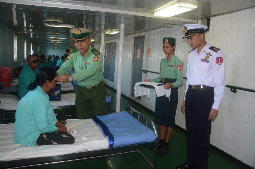 ထိုသို့ဆောင်ရွက်ပေးရာတွင် ဆေးကုသမှုဆိုင်ရာရောဂါ ၁၃၇ ဦး၊ ခွဲစိတ်ရောဂါ ၃၇ ဦး၊ သားဖွားမီးယပ်ရောဂါ ၂၃ ဦး၊ ကလေးရောဂါ ၃၂ ဦး၊ အရိုးရောဂါ ၇၉ ဦး၊ နား၊ နှာခေါင်း၊ လည်ချောင်းရောဂါ ၂၄ ဦး၊ မျက်စိရောဂါ ၁၁၉ ဦးနှင့် သွားနှင့်ခံတွင်းရောဂါ ၁၀၇ ဦး၊ စုစုပေါင်း ဒေသခံပြည်သူ ၅၅၈ ဦးတို့ကို လိုအပ်သည့် ဆေးဝါးကုသမှုများ ဆောင်ရွက်ပေးသည်။ ၎င်းတို့အနက် အထွေထွေခွဲစိတ်လူနာ ၉ ဦး၊ မျက်စိခွဲစိတ်လူနာ ၇ ဦး၊ ဓာတ်မှန်ရိုက်လူနာ ၄ ဦး၊ Ultrasound ဖြင့် စမ်းသပ်စစ်ဆေးလူနာ ၈၅ ဦး၊ ECG စက်ဖြင့် နှလုံးစမ်းသပ်လူနာ ၅၅ ဦးနှင့် ဓာတ်ခွဲစမ်းသပ်လူနာ ၂၇ ဦးတို့ကို ရောဂါ ရှာဖွေစမ်းသပ်ကုသပေးခြင်းများ ဆောင်ရွက်ပေးသည်။