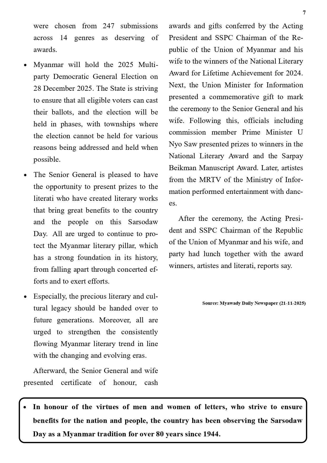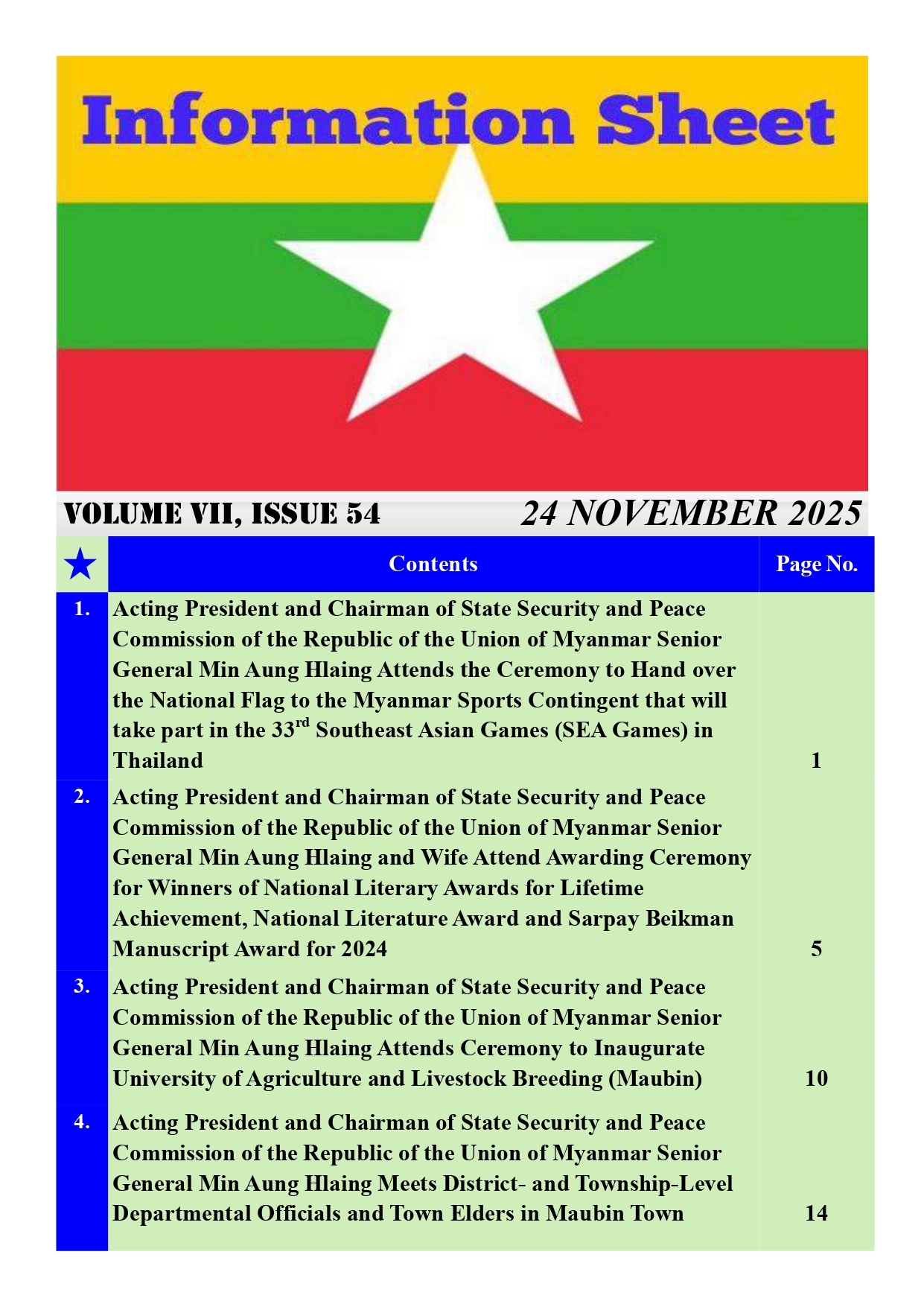 Volume VII, Issue 54 Myanmar & English(24-11-2025)