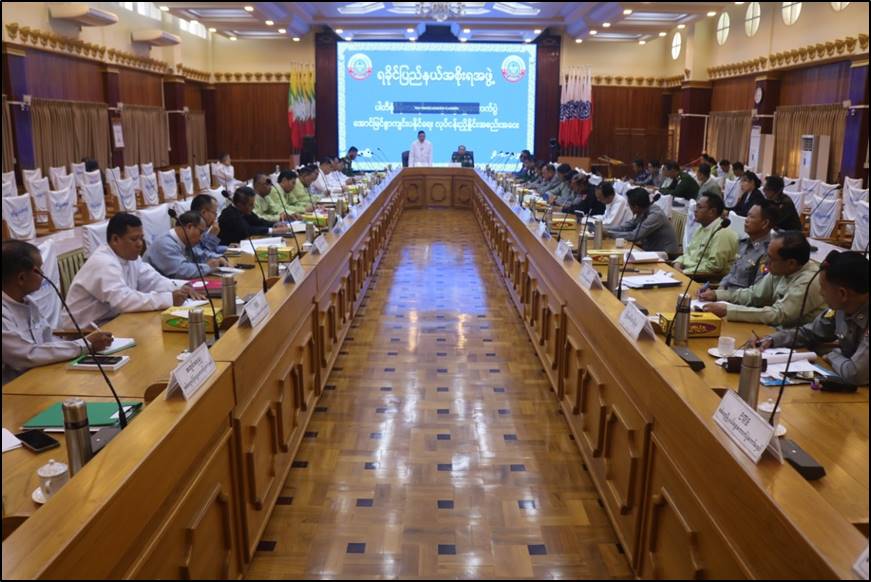 ဦးစွာ ပြည်နယ်ဝန်ကြီးချုပ်က အဖွင့်အမှာစကားပြောကြားပြီး တိုင်းမှူးက လုံခြုံရေးဆိုင်ရာကိစ္စရပ်များနှင့် ပတ်သက်၍ အမှာစကားပြောကြားသည်။၊ ထို့နောက် ပြည်နယ်ရွေးကောက်ပွဲကော်မရှင်အဖွဲ့ခွဲရုံး ပြည်နယ်ရွေးကောက်ပွဲ အရာရှိနှင့် လူဝင်မှု ကြီးကြပ်ရေးနှင့် ပြည်သူ့အင်အားဝန်ကြီးဌာန ပြည်နယ်ဦးစီးမှူးတို့က ရွေးကောက်ပွဲ ဆိုင်ရာလုပ်ငန်းများ ဆောင်ရွက်ထားရှိမှုအခြေအနေများကို ပါဝါပွိုင့်ဖြင့် ရှင်းလင်းတင်ပြ ကြသည်။ ယင်းနောက် ပြည်နယ်ဝန်ကြီးများနှင့် ဌာနဆိုင်ရာတာဝန်ရှိသူများက သက်ဆိုင်ရာကဏ္ဍအလိုက် လုပ်ငန်းဆောင်ရွက်ထားရှိမှုအခြေအနေများနှင့် လုပ်ငန်း လိုအပ်ချက်များကို ဆွေးနွေးတင်ပြကြရာ ပြည်နယ်ဝန်ကြီးချုပ်က ဆွေးနွေးတင်ပြချက် များအပေါ် ပေါင်းစပ်ညှိနှိုင်းဆောင်ရွက်ပေးခဲ့ကြောင်း သတင်းရရှိသည်။