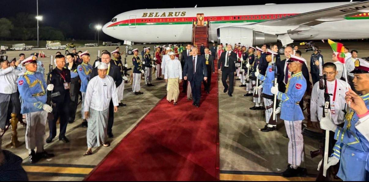 ပြည်ထောင်စုသမ္မတမြန်မာနိုင်ငံတော် ယာယီသမ္မတ နိုင်ငံတော်လုံခြုံရေးနှင့် အေးချမ်းသာယာရေးကော်မရှင်ဥက္ကဋ္ဌ ဗိုလ်ချုပ်မှူးကြီး မင်းအောင်လှိုင် ၏ ဖိတ်ကြား ချက်အရ မြန်မာနိုင်ငံသို့ တရားဝင်ချစ်ကြည်ရေးခရီးလာရောက်သည့် ဘယ်လာရုစ် သမ္မတ နိုင်ငံသမ္မတ H.E. Mr. Alexander Gregoryevich Lukashenko ဦးဆောင်သော အဆင့်မြင့်ကိုယ်စားလှယ်အဖွဲ့ လိုက်ပါလာသော အထူးလေယာဉ်သည် ယနေ့ညပိုင်းတွင် မြန်မာနိုင်ငံလေပိုင်နက်အတွင်းသို့ စတင်ဖြတ်သန်းဝင်ရောက်လာရာ မြန်မာ့ တပ်မတော်(လေ)မှ စတုတ္ထမျိုးဆက်လွန် Su-30 SME ဘက်စုံသုံး အကြီးစား ဂျက်တိုက်လေယာဉ် ၃ စီးက လိုက်ပါခြံရံပျံသန်းကြိုဆိုခဲ့ပြီး နေပြည်တော် တပ်မတော် လေဆိပ်သို့ ရောက်ရှိဆင်းသက်သည်။