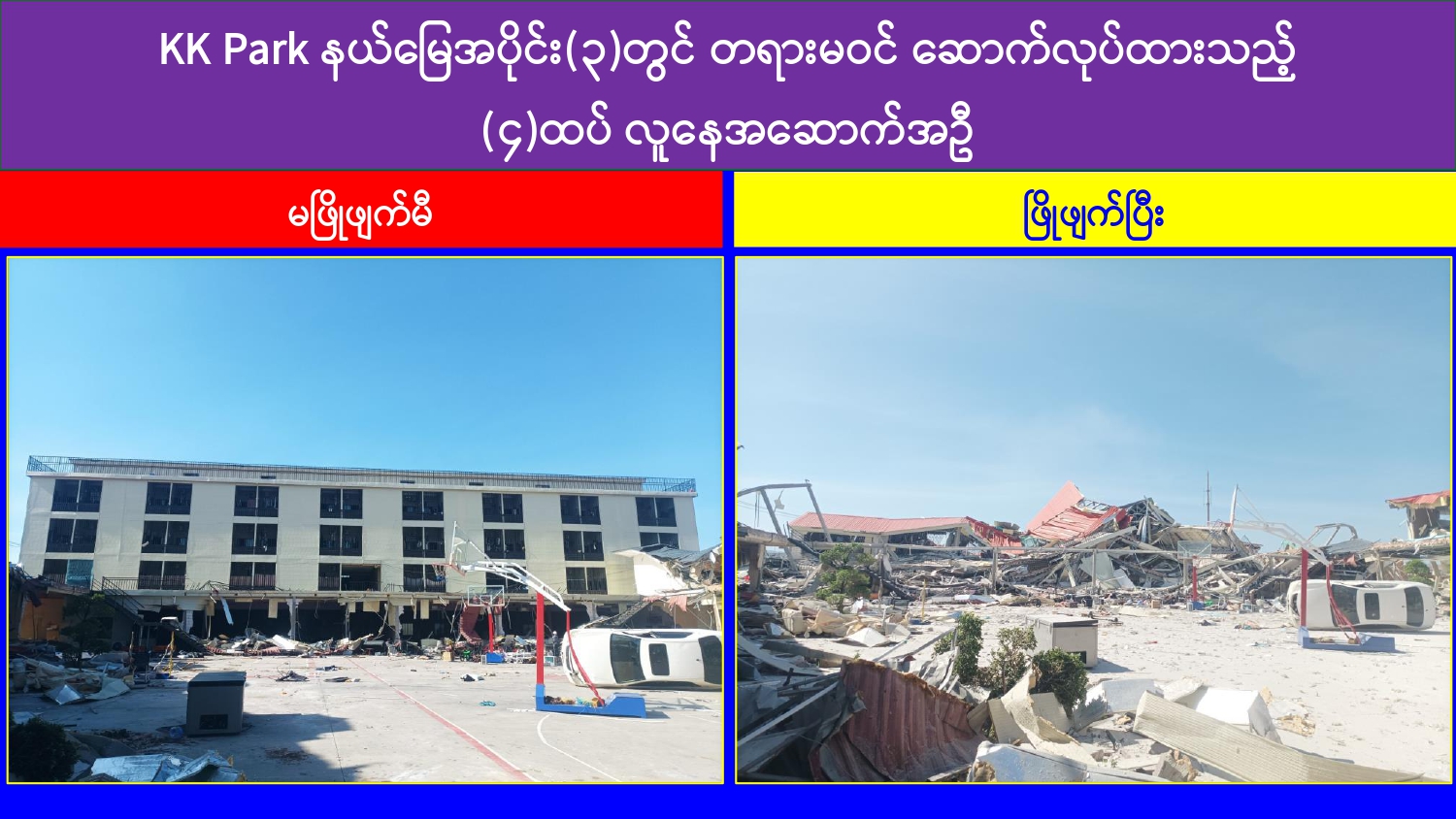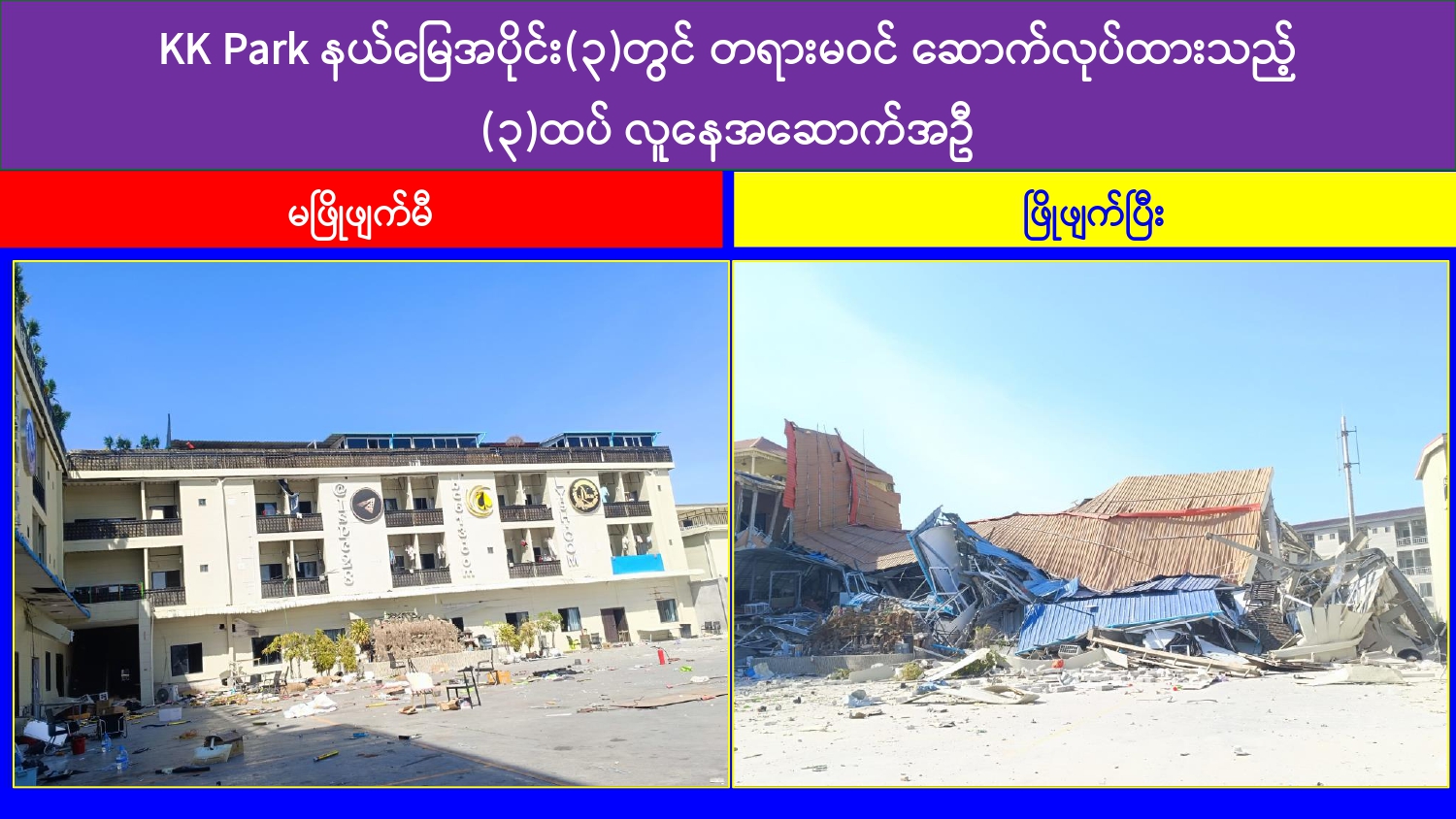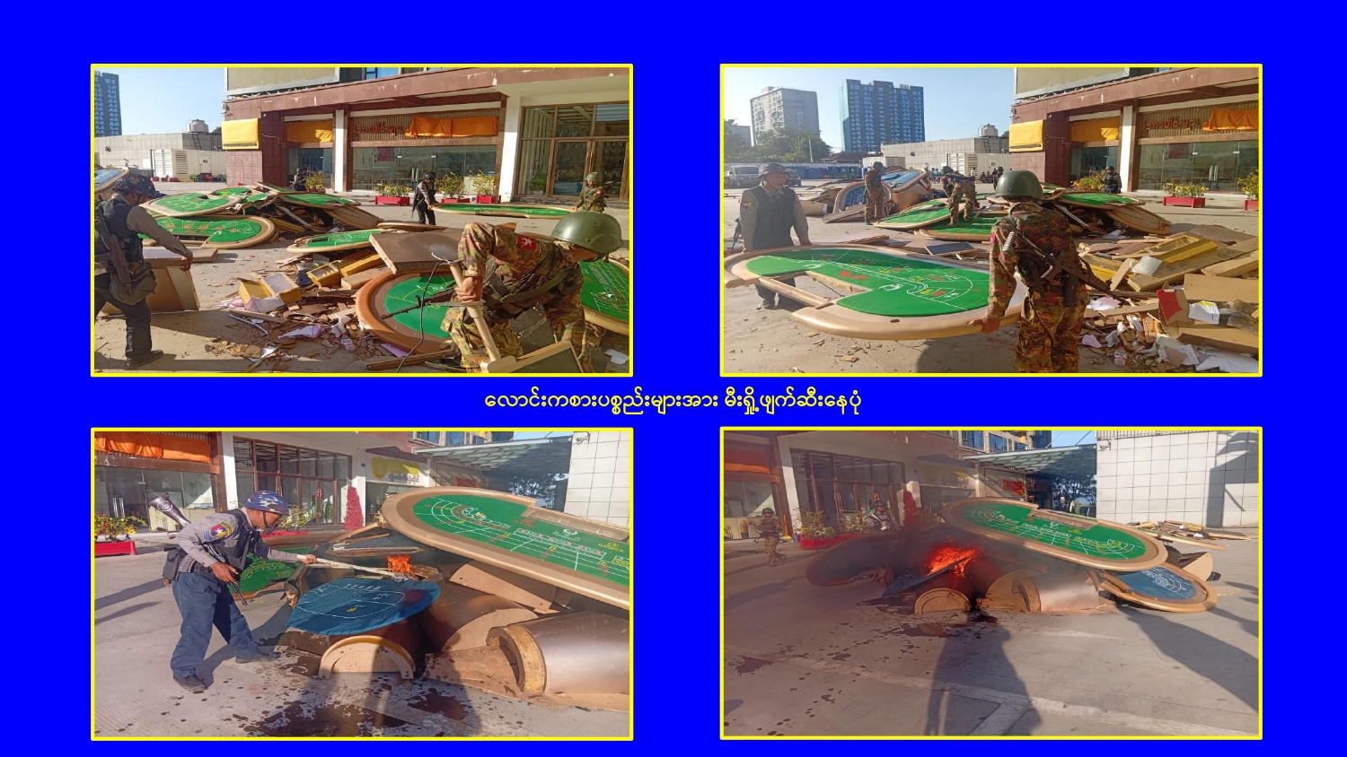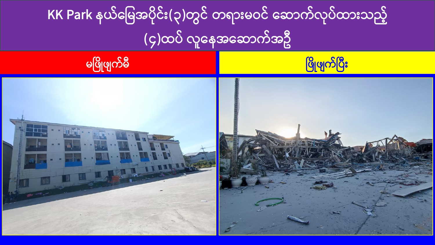 KK Park အပိုင်း(၃) နယ်မြေအတွင်းရှိ အွန်လိုင်းလိမ်လည်မှုနှင့် လောင်းကစားမှုများကျူးလွန်ရာတွင် အသုံးပြုသည့် အဆောက်အအုံ ၇ လုံး ထပ်မံဖြိုချဖျက်ဆီး၊ ရွှေကုက္ကိုလ်နယ်မြေအတွင်း၌ အွန်လိုင်းလိမ်လည်မှုနှင့် လောင်းကစားမှုများ လုပ်ဆောင်ရာတွင် အသုံးပြုခဲ့သည့် အဆောက်အအုံများ ၆၄ လုံးအား ချိတ်ပိတ်သိမ်းဆည်း