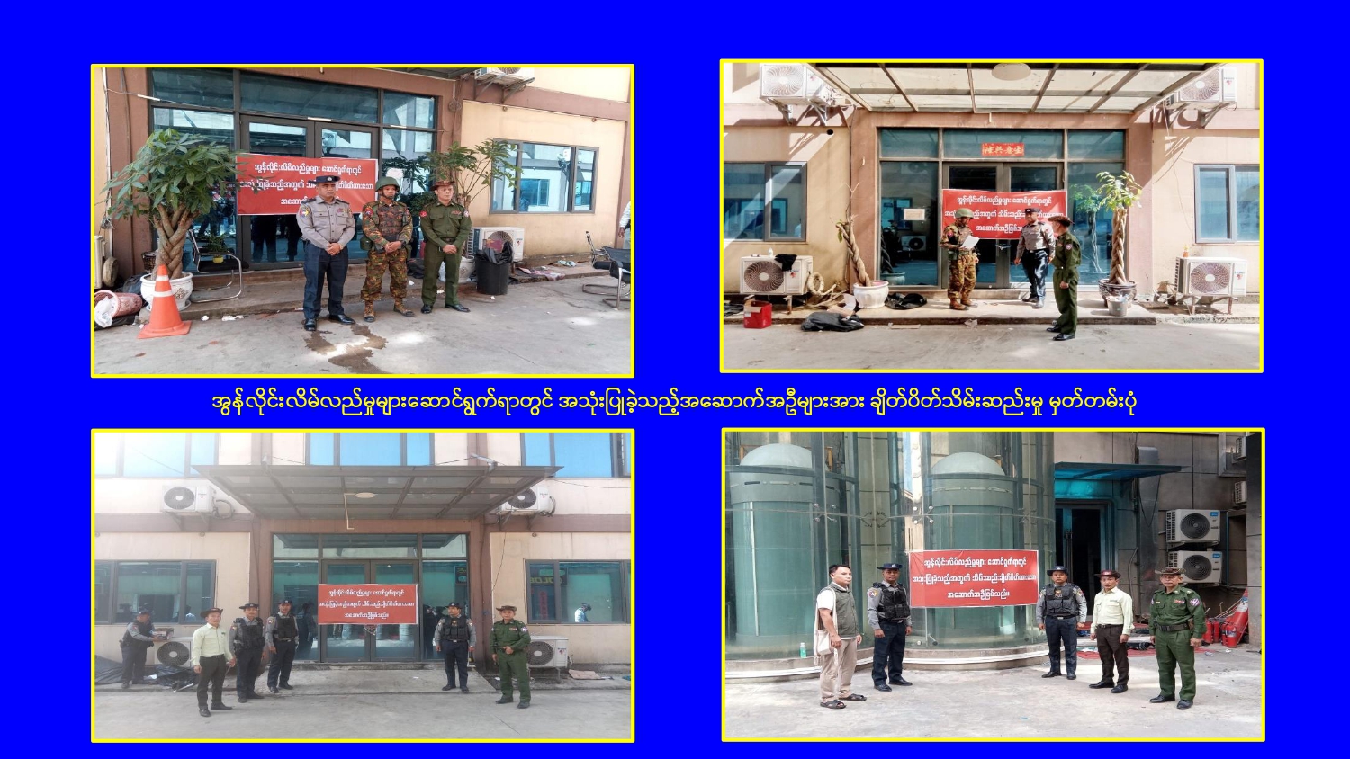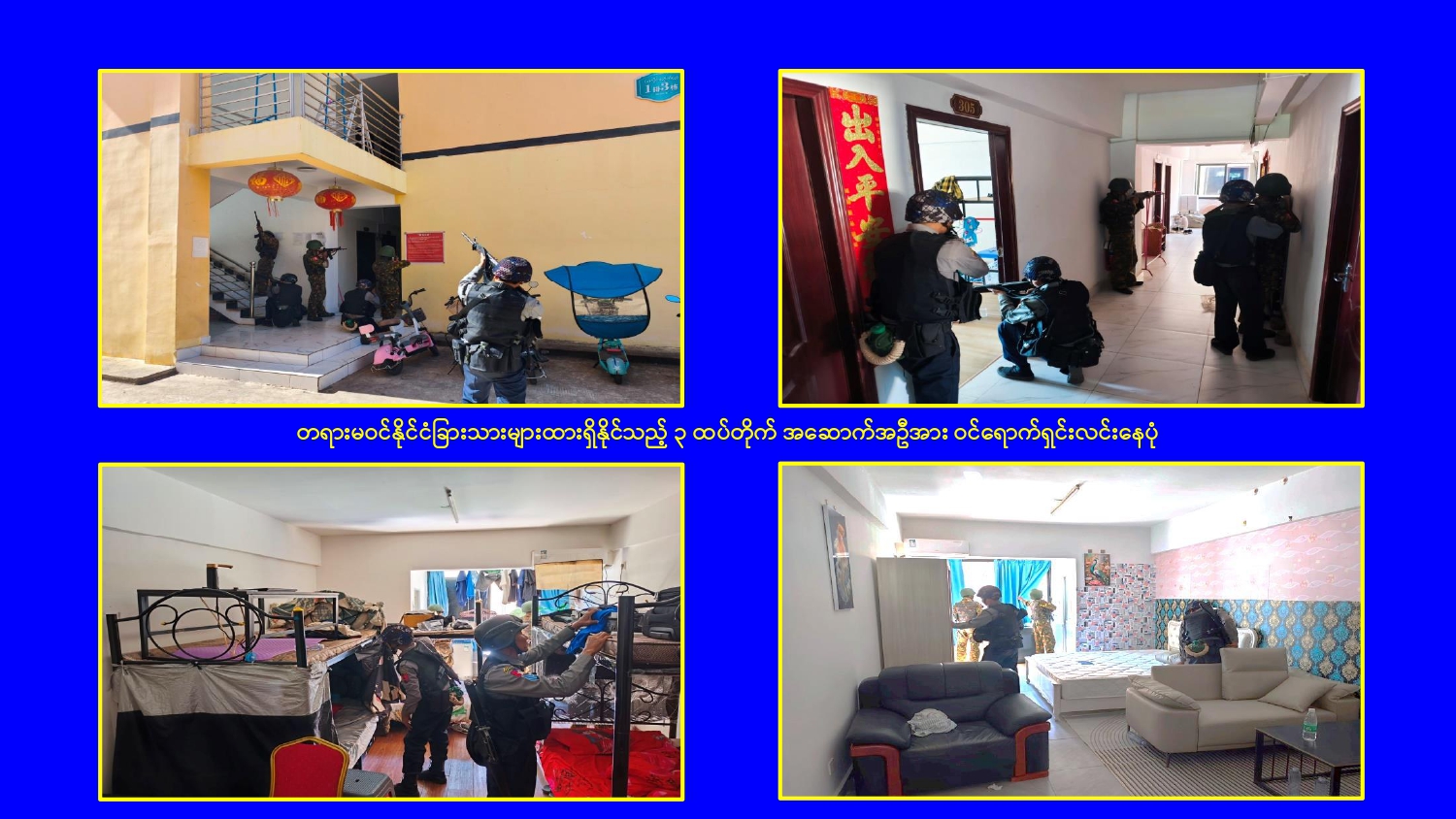 မြန်မာနိုင်ငံအစိုးရအနေဖြင့် အွန်လိုင်းလိမ်လည်မှုများနှင့် အွန်လိုင်းလောင်းကစားမှု များ အများဆုံးအခြေချလုပ်ကိုင်လျက်ရှိကြသည့် ရွှေကုက္ကိုလ်နယ်မြေနှင့် KK Park နယ်မြေများ၌ လုံခြုံရေးတပ်ဖွဲ့ဝင်များ၊ အုပ်ချုပ်ရေးအဖွဲ့အစည်းများနှင့် ဒေသတွင်း တာဝန်ရှိသူများအပါအဝင် အဖွဲ့စုံပါဝင်သည့် ပူးပေါင်းစစ်ဆင်ရေးအဖွဲ့များဖြင့် တရားမဝင် အဆောက်အအုံများအတွင်း ဝင်ရောက်ရှင်းလင်းခြင်း၊ အွန်လိုင်းလိမ်လည်လောင်းကစားမှု လုပ်ငန်းစဉ်များတွင်အသုံးပြုခဲ့သည့် သိမ်းဆည်းရမိပစ္စည်းများနှင့် တရားမဝင် အဆောက် အအုံများအား စနစ်တကျဖြိုချဖျက်ဆီးခြင်းများ ဆက်လက်ဆောင်ရွက်လျက်ရှိသည်။