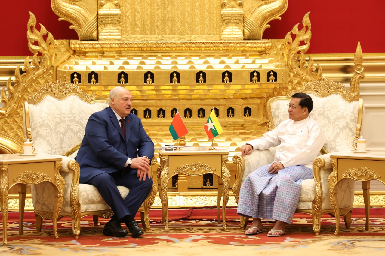 ထို့နောက် နိုင်ငံတော်ယာယီသမ္မတ နိုင်ငံတော်လုံခြုံရေးနှင့် အေးချမ်းသာယာ ရေးကော်မရှင်ဥက္ကဋ္ဌနှင့် ဘယ်လာရုစ်သမ္မတနိုင်ငံသမ္မတ တို့သည် နှစ်နိုင်ငံအကြား စီးပွားရေးဆိုင်ရာပူးပေါင်းဆောင်ရွက်မှုများနှင့်ရင်းနှီးမြှုပ်နှံမှုများကို ဆက်လက်တိုးမြှင့် ဆောင်ရွက်သွားနိုင်မည့်အခြေအနေများ၊ ပညာရေး၊ ကျန်းမာရေး၊ စက်မှု၊ စိုက်ပျိုးမွေး မြူရေးနှင့် စစ်ဘက်နည်းပညာဆိုင်ရာ စသည့် နယ်ပယ်အသီးသီးတွင် ပူးပေါင်းဆောင် ရွက်မှုများကို မြှင့်တင်ဆောင်ရွက်သွားမည့်အခြေအနေများ၊ မြန်မာနိုင်ငံအစိုးရ အနေ ဖြင့် နိုင်ငံတကာနှင့် တစ်ကမ္ဘာလုံးကိုအန္တရာယ်ပေးနေသည့် အွန်လိုင်းလိမ်လည်မှုများ၊ အွန်လိုင်းလောင်းကစားမှုများတိုက်ဖျက်ရေးလုပ်ငန်းစဉ်များကို အမျိုးသားရေးတာဝန် တစ်ရပ်အနေဖြင့် အလေးထားတိုက်ဖျက်ဆောင်ရွက်လျက်ရှိမှု၊ ယခုအခါ မြန်မာ-ထိုင်း နယ်စပ်တွင်ရှိနေသည့် Online လောင်းကစားမှုများသည် သမားရိုးကျမဟုတ်သည့် လုံခြုံရေးဆိုင်ရာစိန်ခေါ်ချက်ဖြစ်သဖြင့် သတိထားဆောင်ရွက်လျက်ရှိမှု၊ ၎င်းလုပ်ငန်း သည် ကိုဗစ်-၁၉ ကာလနောက်ပိုင်း ၂၀၂၀ ပြည့်နှစ်မှ စတင်ကျယ်ပြန့်လာမှု၊ ၂၀၂၁ ခုနှစ် မြန်မာနိုင်ငံတွင် နိုင်ငံရေးမတည်ငြိမ်မှုဖြစ်လာချိန်၌ နယ်စပ်ဒေသများတွင် တည်ငြိမ်မှုနှင့် တရားဥပဒေစိုးမိုးမှုလျော့နည်းလာသည်ကို အခွင့်ကောင်းယူပြီး တရားမဝင်လက်နက်ကိုင်အဖွဲ့များနှင့်ပူးပေါင်း၍ အွန်လိုင်းလောင်းကစားမှုကို အခြေချ ခဲ့မှု၊ အွန်လိုင်းလောင်းကစားမှုပြုလုပ်သည့်နေရာများမှ ဖမ်းဆီးရမိသူ နိုင်ငံပေါင်း ၅၂ နိုင်ငံမှ ပြည်ပနိုင်ငံသား ၇၀၀၀၀ နီးပါးခန့်ကို ထိန်းသိမ်း၍ မိခင်နိုင်ငံသို့ပြန်ပို့လျက်ရှိမှု၊ ကျန်ရှိသည့်ပြည်ပနိုင်ငံသား ၁၀၀၀ ခန့်ကိုလည်း ပြန်ပို့ရန်ဆောင်ရွက်လျက်ရှိမှုနှင့် အွန်လိုင်းလိမ်လည် လောင်းကစားမှုများ လုံးဝပြန်လည်အခြေမချနိုင်စေရေး၊ဒုစရိုက် လုပ်ငန်းများ ထပ်မံမလုပ်ဆောင်နိုင်စေရေးအတွက် တရားမဝင်ဆောက်လုပ်ထားသည့် အဆောက်အအုံများကိုလည်း အပြီးတိုင်ဖျက်ဆီးဖြိုချမှုများ ဆောင်ရွက်လျက်ရှိပြီး အမြစ်ပြတ်ချေမှုန်းသွားမည့်အခြေအနေများ၊ မြန်မာနိုင်ငံတွင် ပါတီစုံဒီမိုကရေစီ အထွေထွေရွေးကောက်ပွဲတစ်ရပ်ကို မကြာမီကာလအတွင်း ကျင်းပပြုလုပ် သွားမည်ဖြစ်ပြီး ဘယ်လာရုစ်နိုင်ငံမှလည်း လေ့လာစောင့်ကြည့်ရေး အဖွဲ့စေလွှတ် သွားမည့်အခြေအနေများ၊ နှစ်နိုင်ငံအကြား ချစ်ကြည်ရင်းနှီးမှုနှင့် ပူးပေါင်းဆောင်ရွက်မှု များကို ကဏ္ဍပေါင်းစုံ၌ ဆက်လက်တိုးမြှင့် ဆောင်ရွက်သွားမည့် အခြေအနေများနှင့် စပ်လျဉ်း၍ ရင်းနှီးပွင့်လင်းစွာ အမြင်ချင်းဖလှယ်ဆွေးနွေးကြသည်။