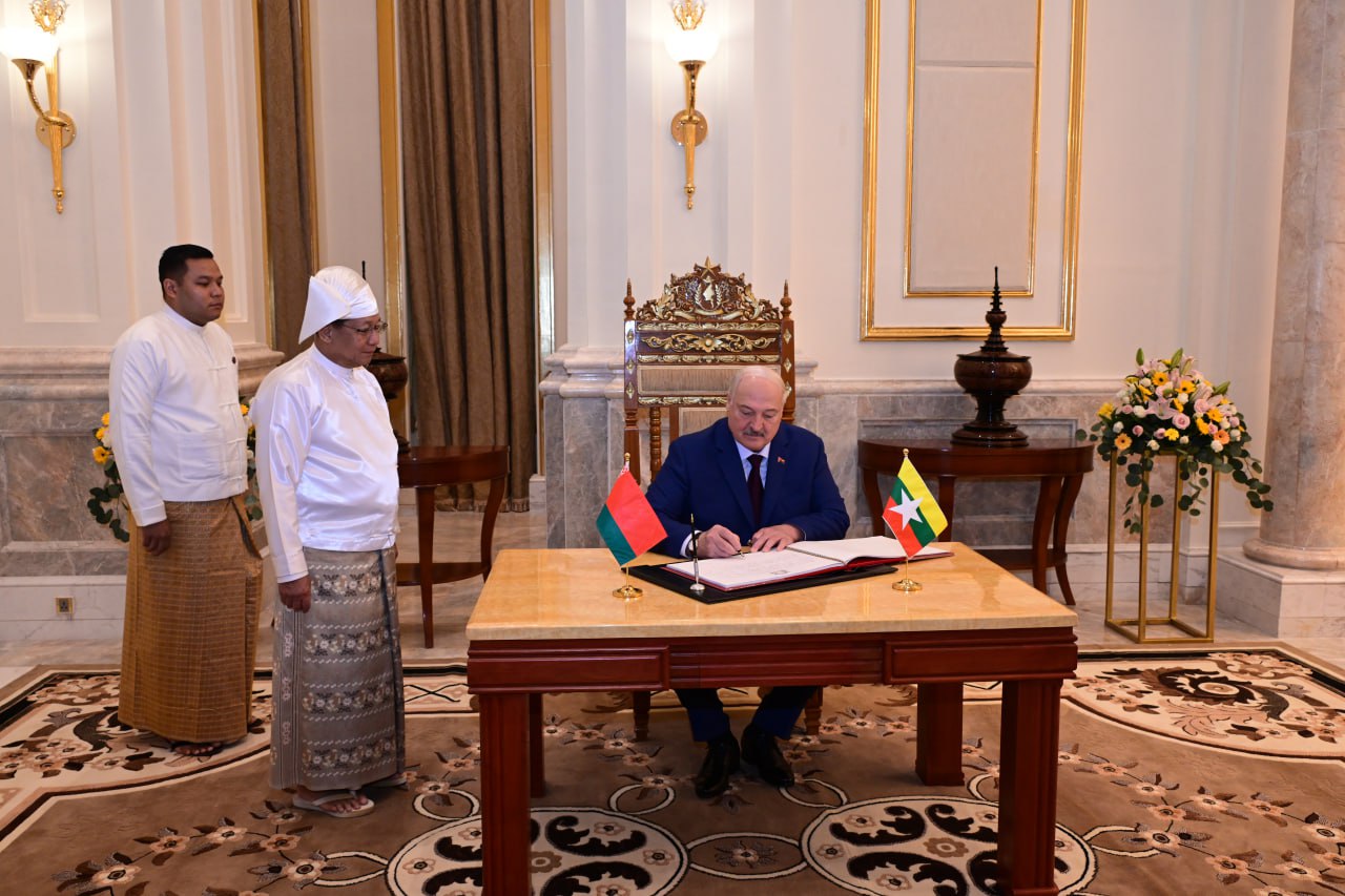 ၎င်းနောက် ဘယ်လာရုစ်သမ္မတနိုင်ငံသမ္မတ သည် ပြည်ထောင်စုသမ္မတမြန်မာ နိုင်ငံတော်၊ နိုင်ငံတော်သမ္မတအိမ်တော် ဧည့်သည်တော်မှတ်တမ်းစာအုပ်တွင် အမှတ် တရလက်မှတ်ရေးထိုးပြီး နိုင်ငံတော်ယာယီသမ္မတ နိုင်ငံတော်လုံခြုံရေးနှင့် အေးချမ်း သာယာရေး ကော်မရှင်ဥက္ကဋ္ဌ နှင့်အတူ မှတ်တမ်းတင်ဓာတ်ပုံရိုက်သည်။