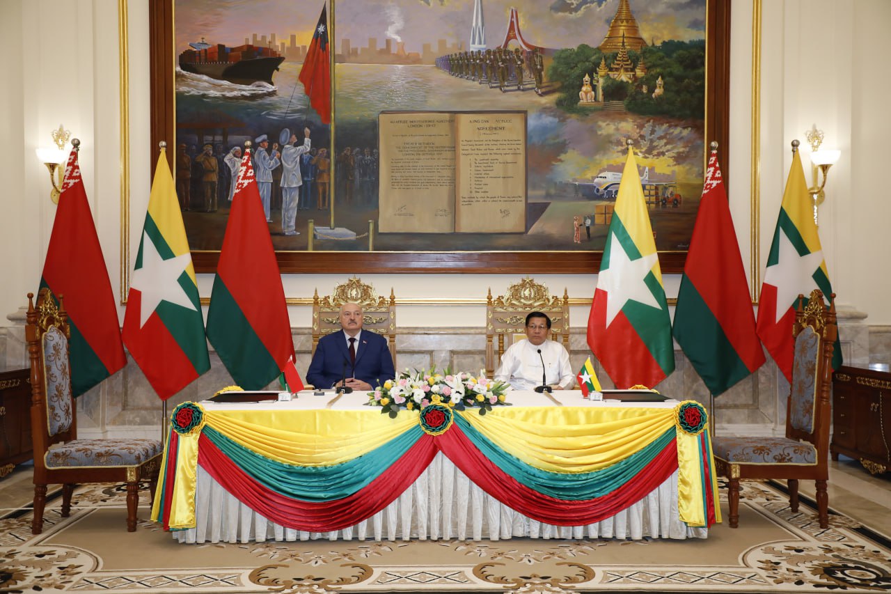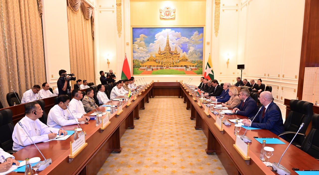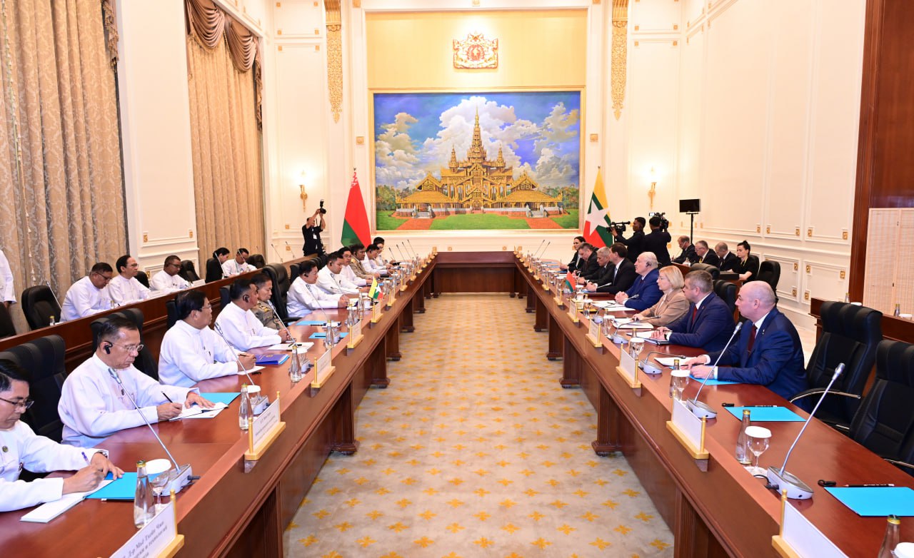ပြည်ထောင်စုသမ္မတမြန်မာနိုင်ငံတော်နှင့် ဘယ်လာရုစ်သမ္မတနိုင်ငံတို့အကြား နှစ်နိုင်ငံတွေ့ဆုံဆွေးနွေးပွဲကို ယနေ့နံနက်ပိုင်းတွင် သမ္မတအိမ်တော်၊ သံတမန်ဆောင် ဧည့်ခန်းမ၌ ကျင်းပပြုလုပ်သည်။