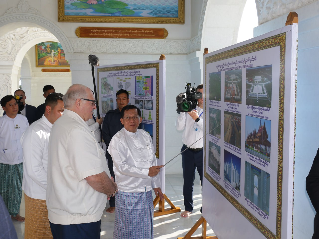 ဘယ်လာရုစ်သမ္မတနိုင်ငံသမ္မတ H.E. Mr. Aleksandr Lukashenko နှင့် ပြည်ထောင်စုသမ္မတမြန်မာနိုင်ငံတော်ယာယီသမ္မတ၊ နိုင်ငံတော်လုံခြုံရေးနှင့် အေးချမ်းသာယာရေးကော်မရှင်ဥက္ကဋ္ဌ ဗိုလ်ချုပ်မှူးကြီး မင်းအောင်လှိုင် မာရဝိဇယဗုဒ္ဓရုပ်ပွားတော်မြတ်ကြီးအား ဖူးမြော်ကြည်ညို နေပြည်တော် နိုဝင်ဘာ ၂၈