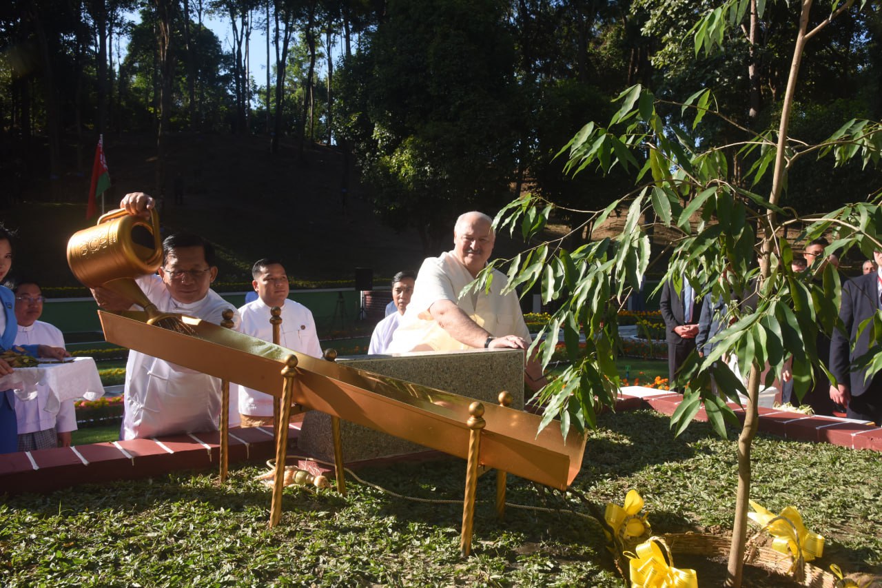 ယင်းနောက် ဘယ်လာရုစ်သမ္မတနိုင်ငံသမ္မတ၊ ပြည်ထောင်စုသမ္မတမြန်မာ နိုင်ငံတော် ယာယီသမ္မတနှင့်အဖွဲ့ဝင်များသည် ဘယ်လာရုစ်-မြန်မာအထိမ်းအမှတ် ကံ့ကော်ပင် ရှေ့၌ စုပေါင်းမှတ်တမ်းတင်ဓာတ်ပုံရိုက်ကြပြီး အမျိုးသားပရဆေးဥယျာဉ် အတွင်းရှိ အာဆီယံနှင့် BIMSTEC ဘင်းစတက်အဖွဲ့ဝင် နိုင်ငံ့အကြီးအကဲများ စိုက်ပျိုးခဲ့ သည့် အထိမ်းအမှတ်သစ်ပင်များကို လှည့်လည်ကြည့်ရှုခဲ့ကြကြောင်း သတင်းရရှိသည်။