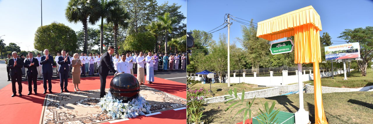 ပြည်ထောင်စုသမ္မတမြန်မာနိုင်ငံနှင့် ဘယ်လာရုစ်သမ္မတနိုင်ငံတို့အကြား နှစ်နိုင်ငံ သံတမန်ချစ်ကြည်ရင်းနှီးမှုအဓွန့်ရှည်တည်တံ့စေရန် ရည်ရွယ်ပြီး ဘယ်လာရုစ်သမ္မတ နိုင်ငံ၏ မြို့တော် Minsk မြို့၏အမည်အား ရာဇသင်္ဂဟလမ်းမကြီးနှင့် ဇမ္ဗူကျက်သရေ လမ်းမကြီးကို ဆက်သွယ်ထားသောလမ်း၏အမည်အဖြစ် ဂုဏ်ပြုပေးအပ်ပွဲအခမ်းအနား ကို ယနေ့နံနက်ပိုင်းတွင် ပြည်ထောင်စုနယ်မြေနေပြည်တော်ရှိ ရာဇသင်္ဂဟလမ်းနှင့် သီရိ ကျော်စွာလမ်းထောင့်(အဆင့်မြင့်ဈေးအနီး)၌ ကျင်းပသည်။