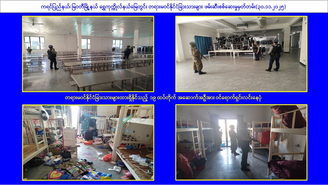 ထို့ပြင် ရွှေကုက္ကိုလ်နယ်မြေအတွင်း အွန်လိုင်းလိမ်လည်မှုများလုပ်ဆောင်ရာတွင် အသုံးပြုခဲ့သည့် အဆောက်အအုံများအား နိုဝင်ဘာ ၁၈ ရက်မှ စတင်စစ်ဆေးခဲ့ရာ ယနေ့ အထိ တရားမဝင်အဆောက်အအုံ ၁၄၀ လုံးကို စစ်ဆေးတွေ့ရှိရပြီး အဆိုပါ အဆောက် အအုံများကို ပြန်လည်အသုံးပြုမှုမရှိစေရေးအတွက် သိမ်းဆည်းချိပ်ပိတ်ခြင်းများကို ဆက် လက်ဆောင်ရွက်လျက်ရှိရာ ယနေ့အတွင် တရားမဝင်အဆောက်အအုံ ၁၈ လုံးကို ထပ်မံ ချိပ်ပိတ်သိမ်းဆည်းနိုင်ခဲ့ပြီး တရားမဝင်အဆောက်အအုံ စုစုပေါင်း ၁၁၉ လုံး ချိပ်ပိတ်သိမ်း ဆည်းပြီးဖြစ်ကြောင်း သိရှိရသည်။