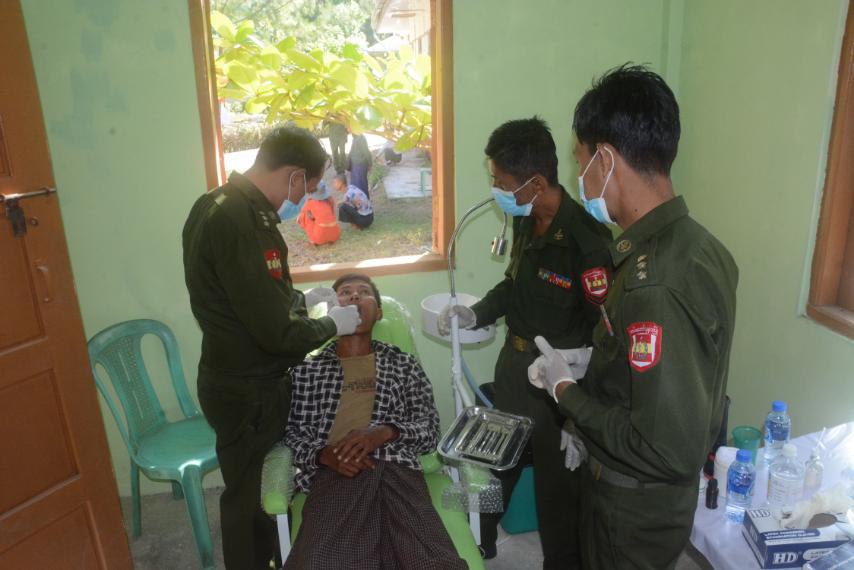 ထိုသို့ဆောင်ရွက်ပေးရာတွင် ဆေးကုသမှုဆိုင်ရာရောဂါ ၁၂၁ ဦး၊ ခွဲစိတ်ရောဂါ ၅၆ ဦး၊ သားဖွားမီးယပ်ရောဂါ ၂၂ ဦး၊ ကလေးရောဂါ ၁၉ ဦး၊ အရိုးရောဂါ ၉၃ ဦး၊ နား၊ နှာခေါင်း၊ လည်ချောင်းရောဂါ ၃၁ ဦး၊ မျက်စိရောဂါ ၈၀ ဦးနှင့် သွားနှင့်ခံတွင်းရောဂါ ၅၃ ဦး၊ စုစုပေါင်း ၄၇၅ ဦးတို့ကို လိုအပ်သည့် ဆေးဝါးကုသမှုများ ဆောင်ရွက်ပေးသည်။ ၎င်းတို့အနက် အထွေထွေခွဲစိတ်လူနာ ၄ ဦး၊ မျက်စိခွဲစိတ်လူနာ ၁၁ ဦး၊ ဓာတ်မှန်ရိုက် လူနာ ၄ ဦး၊ Ultrasound စက်ဖြင့် စမ်းသပ်စစ်ဆေးလူနာ ၆၄ ဦး၊ ECG စက်ဖြင့် နှလုံးစမ်းသပ်လူနာ ၅၄ ဦးနှင့် ဓာတ်ခွဲစမ်းသပ်လူနာ ၃၅ ဦးတို့ကို ရောဂါရှာဖွေစမ်းသပ် ကုသပေးခြင်းများ ဆောင်ရွက်ပေးပြီး ဆေးရုံလွှဲပြောင်းကုသရန်လိုအပ်သည့် ဒေသခံ ပြည်သူတစ်ဦးအား ရန်ကုန်တိုင်းဒေသကြီး၊ မင်္ဂလာဒုံမြို့နယ်ရှိ တပ်မတော်ဆေးရုံသို့ လွှဲပြောင်းကုသပေးသည်။ ထို့သို့ ဆေးဝါကုသမှုလာရောက်ခံယူကြသည့် ဒေသခံပြည်သူ များအား တာဝန်ရှိသူများက လိုက်လံကြည့်ရှုအားပေးပြီး လိုအပ်သည်များ ဖြည့်ဆည်း ဆောင်ရွက်ပေးသည်။