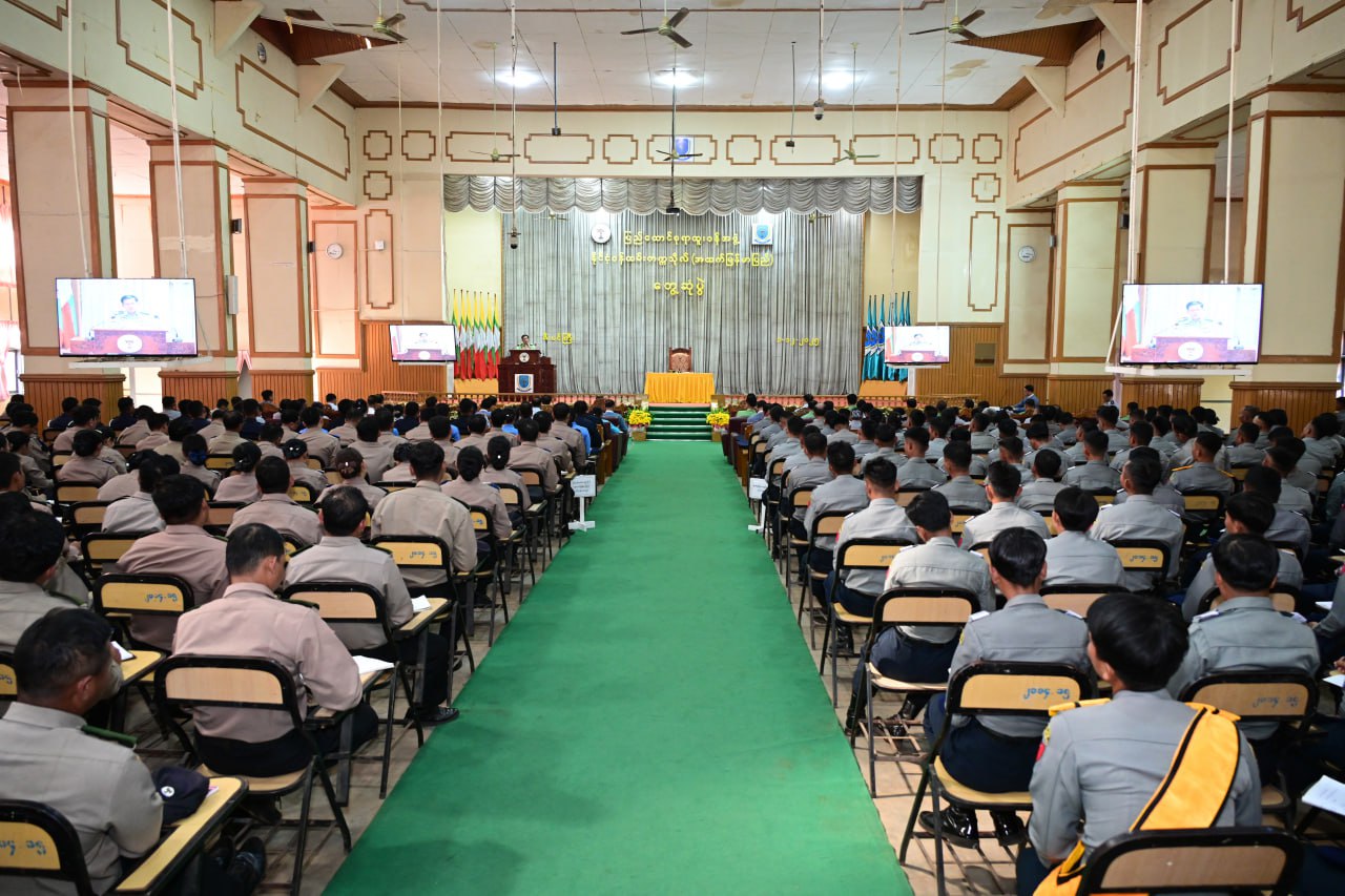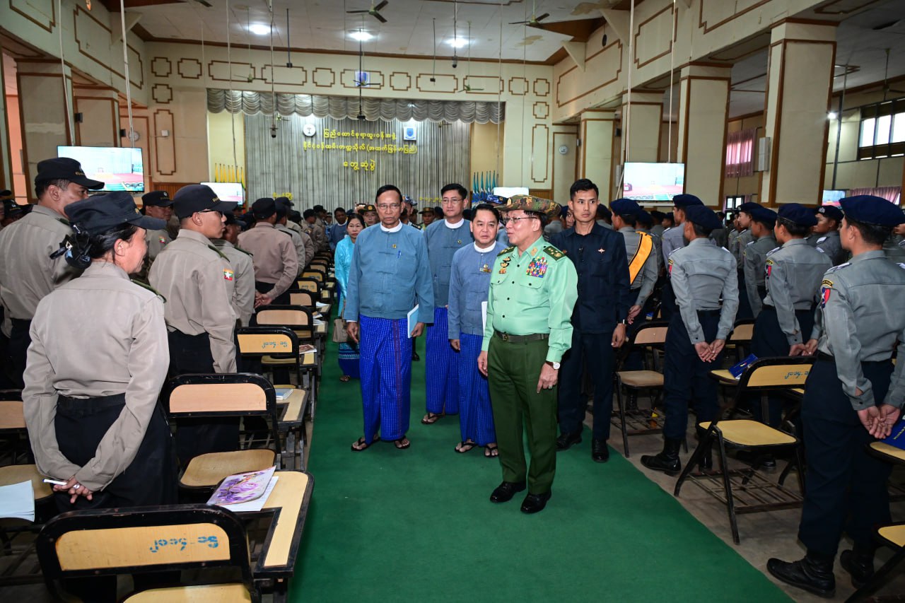 ပြည်ထောင်စုသမ္မတမြန်မာနိုင်ငံတော် ယာယီသမ္မတ နိုင်ငံတော်လုံခြုံရေးနှင့် အေးချမ်းသာယာရေးကော်မရှင်ဥက္ကဋ္ဌ ဗိုလ်ချုပ်မှူးကြီး မင်းအောင်လှိုင် သည် မန္တလေး တိုင်းဒေသကြီး၊ ပြင်ဦးလွင်မြို့နယ်၊ ဇီးပင်ကြီးရှိ နိုင်ငံ့ဝန်ထမ်းတက္ကသိုလ် (အထက် မြန်မာပြည်)၊ ရဲအရာရှိလေ့ကျင့်ရေးကျောင်း (ဇီးပင်ကြီး)နှင့် ဗဟိုမီးသတ်သင်တန်း ကျောင်း(ပြင်ဦးလွင်)တို့မှ နည်းပြအရာရှိများနှင့် သင်တန်းသား၊ သင်တန်းသူများအား ယနေ့ မွန်းလွဲပိုင်းတွင် နိုင်ငံ့ဝန်ထမ်းတက္ကသိုလ်(အထက်မြန်မာပြည်)ရှိ ရတနာခန်းမ ၌တွေ့ဆုံအမှာစကားပြောကြားသည်။
