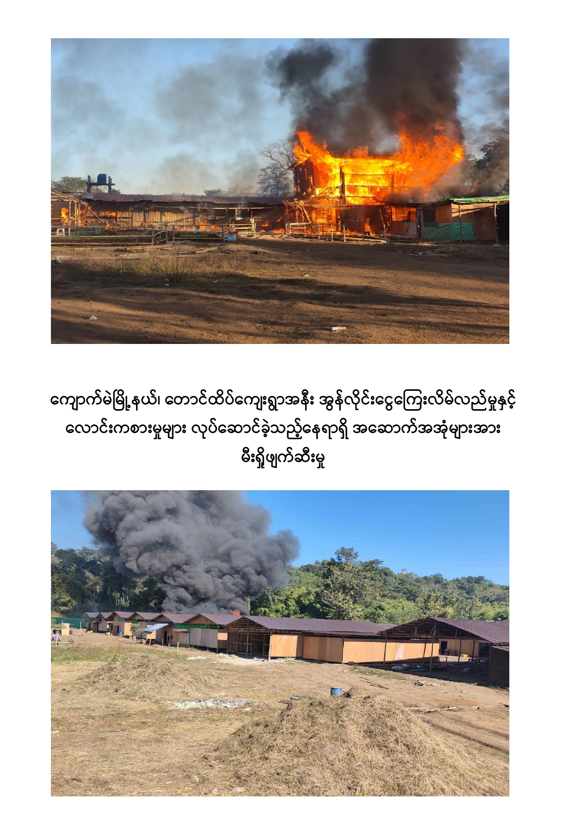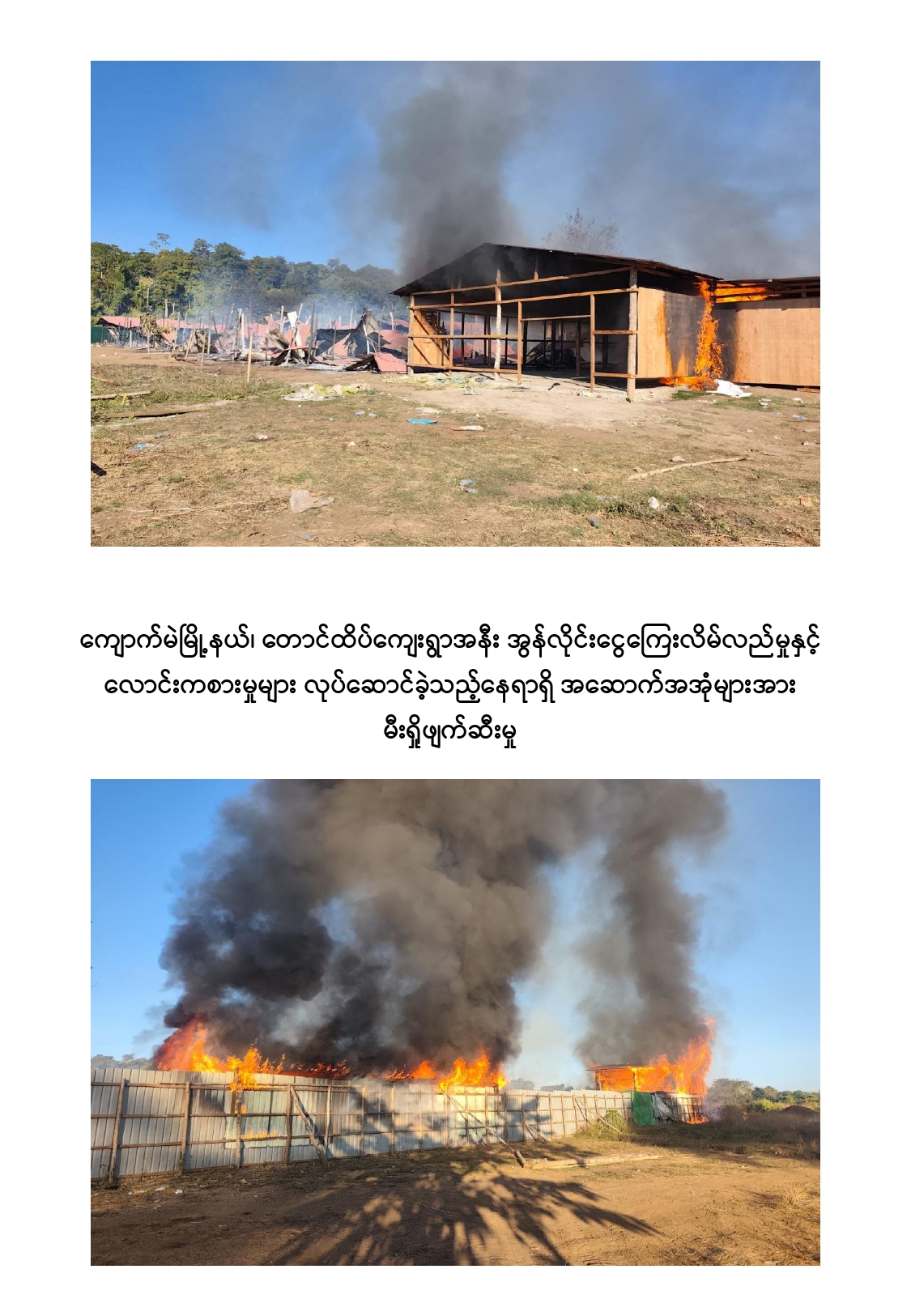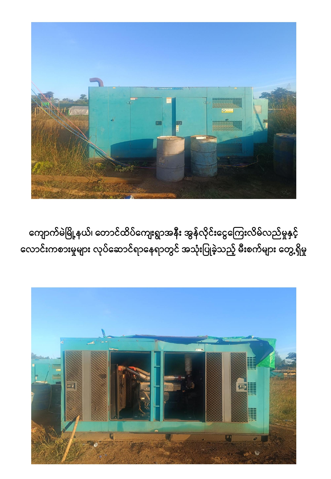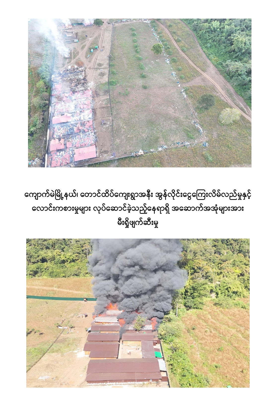 ကျောက်မဲမြို့နယ်အတွင်း နယ်မြေလုံခြုံရေးဆောင်ရွက်နေသည့် လုံခြုံရေးတပ်ဖွဲ့ ဝင်များသည် နိုဝင်ဘာ ၃၀ ရက်တွင် ကျောက်မဲမြို့နယ်၊ တောင်ထိပ်ကျေးရွာ၏ တောင်ဘက် ဒုဋ္ဌဝတီမြစ်အနီးသို့ ရောက်ရှိစဉ် မသင်္ကာဖွယ်ရာ အဆောက်အအုံများကို တွေ့ရှိရသဖြင့် ဝင်ရောက်ရှာဖွေစစ်ဆေးခဲ့ရာ အွန်လိုင်းငွေကြေးလိမ်လည်မှုနှင့် လောင်းကစားမှုများ လုပ်ဆောင်နေသည့်နေရာဖြစ်ကြောင်း တွေ့ရှိရပြီး လုပ်ငန်းလုပ်ကိုင် နေကြသူများအား မတွေ့ ရှိရဘဲ အလျား ၆၀ ပေ၊ အနံ ၃၀ ပေ ရှိ သွပ်မိုး ၃ ထပ်သားကာ အိပ်ဆောင် ၆ လုံး၊ အလျား ၆၀ ပေ၊ အနံ ၃၀ ပေ ရှိ သွပ်မိုး ၃ ထပ်သားကာ လုပ်ငန်းဆောင် ၅ လုံး၊ အလျား ၆၀ ပေ၊ အနံ ၃၀ ပေ ရှိ သွပ်မိုး ၃ ထပ်သားကာ အစားအစာသိုလှောင်ရုံ ၆ လုံး၊ အလျား ၆၀ ပေ၊ အနံ ၃၀ ပေ ရှိ ဆောက်လုပ်ဆဲလုပ်ငန်းဆောင် ၁ လုံး၊ အလျား ၆၀ ပေ၊ အနံ ၃၀ ပေ ရှိ ဆောက်လုပ်ဆဲ အိပ်ဆောင် ၁ လုံး၊ အလျား ၈၀ ပေ၊ အနံ ၁၅ ပေ ရှိ အထွေထွေသုံးအဆောင် ၁ လုံး၊ အလျား ၈၀ ပေ၊ အနံ ၁၀ ပေ ရှိ ၃ထပ်သားကာ တန်းလျားရှည်အိမ်သာ အိမ်သာ ၁ လုံး၊ အလျား ၃၀ ပေ၊ အနံ ၁၀ ပေ ရှိ အိပ်ခန်းတွဲ ၄ ခန်းတွဲအိပ်ဆောင် ၁ လုံး၊ အိပ်ခန်း ၄ ခန်းတွဲ(ရိက္ခာစတိုပါ) နှစ်ထပ်ဆောင် ၁ လုံး၊ မီးစက်အကြီး ၁ လုံး၊ ၁၅ ပေအမြင့် ကင်းစောင့် သစ်သား မျှော်စင် ၅ လုံး၊ အလျား ၂၀ ပေ၊ အနံ ၁၀ ပေ၊ အိပ်ဆောင်တန်းလျား ၁ လုံး၊ အလျား ၇၀၀ ပေ၊ အနံ ၄၀၀ ပေ၊ သွပ်ကာခြံဝန်း ၁ ခု၊ All in one desktop ကွန်ပျူတာ ၃၀ လုံး၊ Star Link ဗန်း ၁၀ ခု၊ Air cooler ၁ လုံး၊ Xiaomi ဝိုင်ဖိုင်စက် ၂ လုံး၊ Sound Box ၁ လုံး၊ Power Station ၃ လုံး၊ ငွေရေတွက်စက် ၁ လုံး၊ ငွေကဒ်ဖြတ်စက် ၃ လုံး၊ ကွန်ပျူတာ ဆက်စပ်ပစ္စည်းများနှင့် အခြားလျှပ်စစ်သုံးပစ္စည်းများ ကို တွေ့ရှိသိမ်းဆည်းရမိခဲ့ကြောင်း သိရှိရသည်။