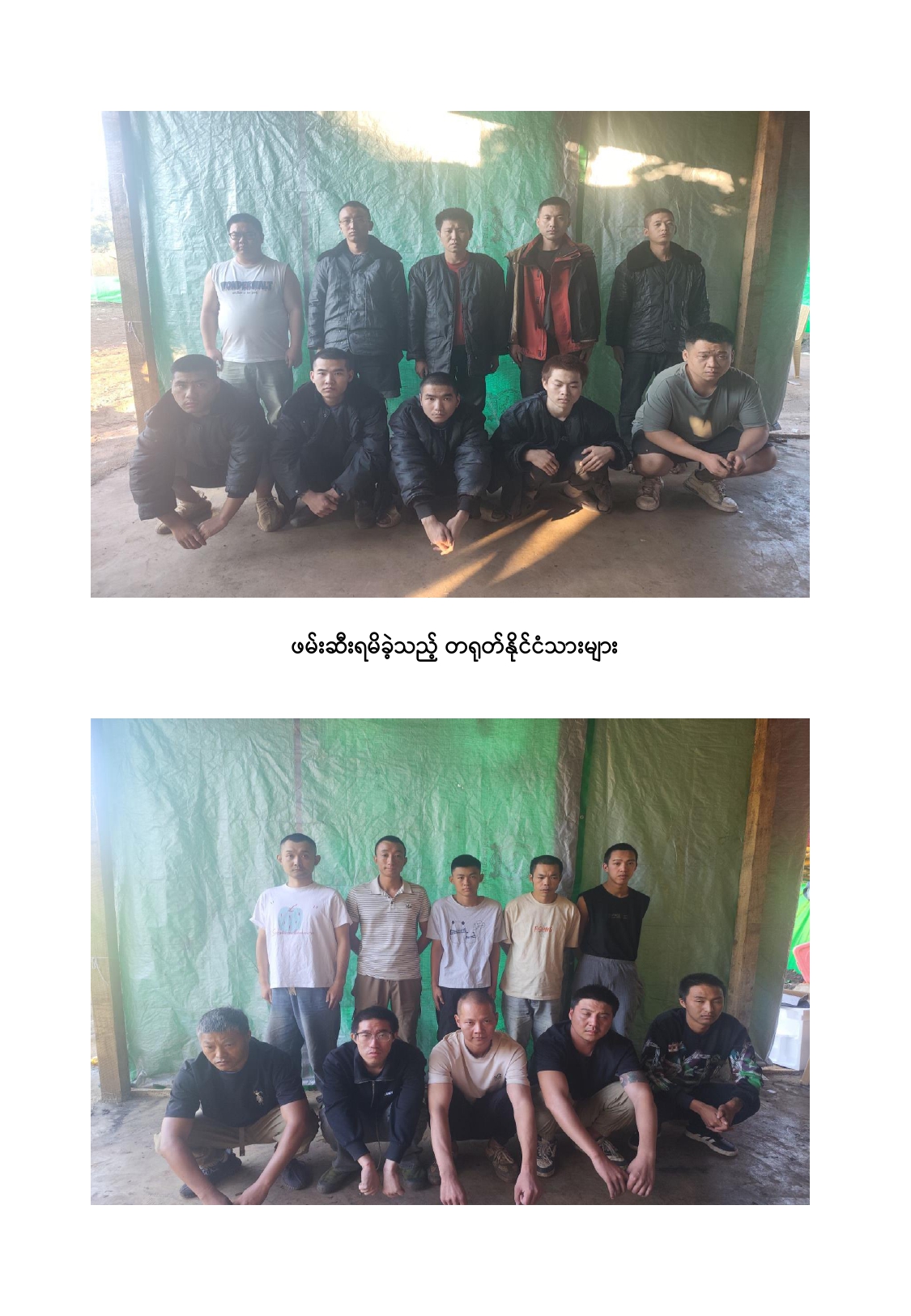 ဆက်လက်၍ လုံခြုံရေးတပ်ဖွဲ့ဝင်များသည် နယ်မြေလုံခြုံရေးလုပ်ငန်းများဆက်လက် ဆောင်ရွက်စဉ် တောင်ထိပ်ကျေးရွာအနီး ထပ်မံ၍ရှင်းလင်းရာ အဆိုပါနေရာ၏ မြောက်ဘက်တွင် အွန်လိုင်းလိမ်လည်လောင်းကစားမှုများ လုပ်ကိုင်နေသူများဖြစ်သည့် တရုတ်နိုင်ငံသား ၁၀ ဦးအား လည်းကောင်း၊ ယနေ့တွင် အဆိုပါနေရာ၏ မြောက်ဘက်၊ တောင်ထိပ်ကျေးရွာ၏ တောင်ဘက်တွင် တရုတ်နိုင်ငံသား ၁၀ ဦးအား လည်းကောင်း၊ တောင်ထိပ်ကျေးရွာ၏ မြောက်ဘက်ရှိ ပုံဝိုးကျေးရွာအနီးတွင်လည်း တရုတ်နိုင်ငံသား ၈ ဦးအား လည်းကောင်း အသီးသီး ဖမ်းဆီးရမိခဲ့သည်။