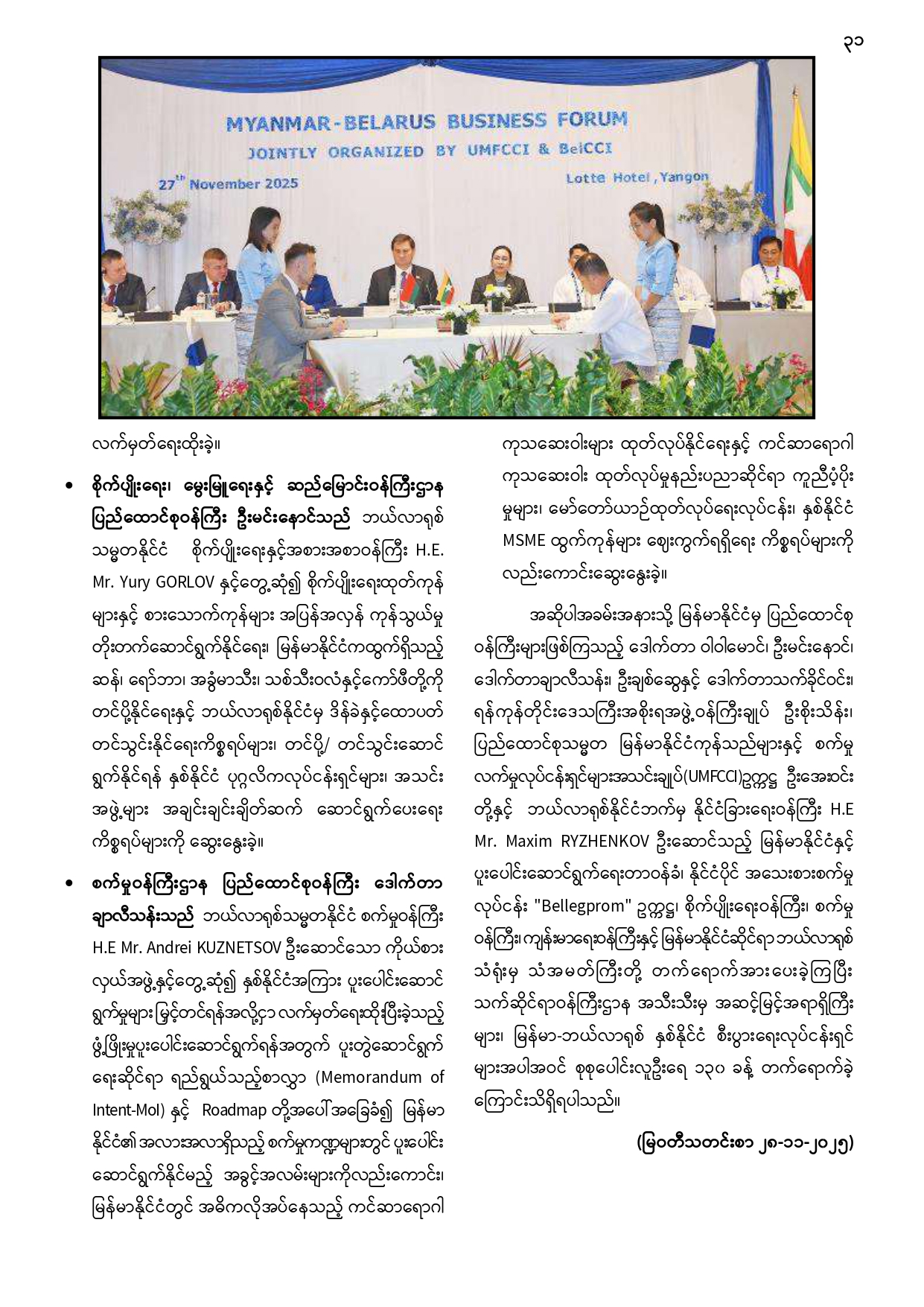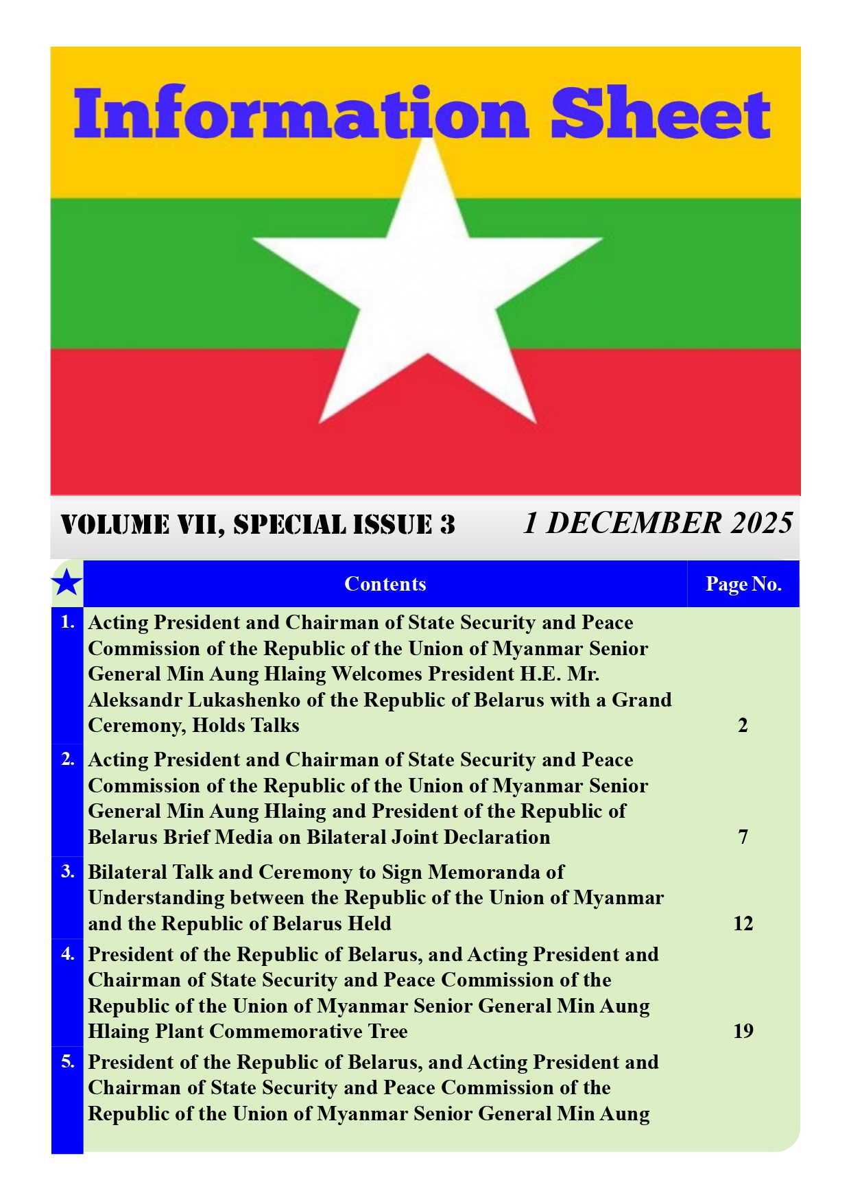 Information Sheet Volume VII, Issue 56 Myanmar & English (1-12-2025)