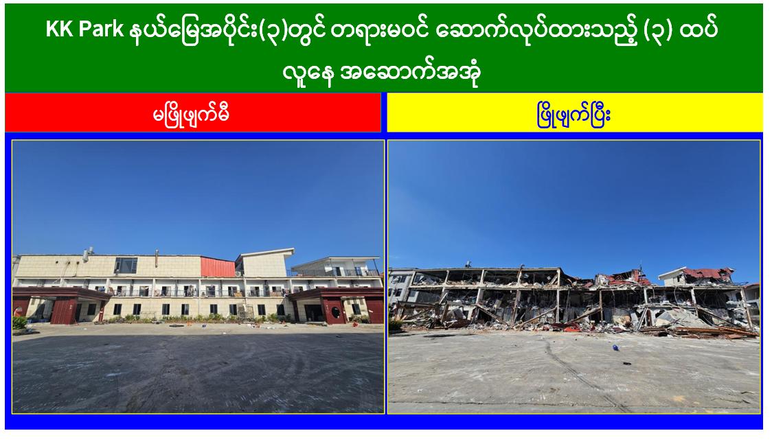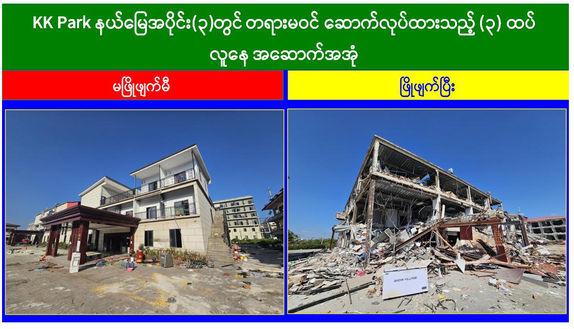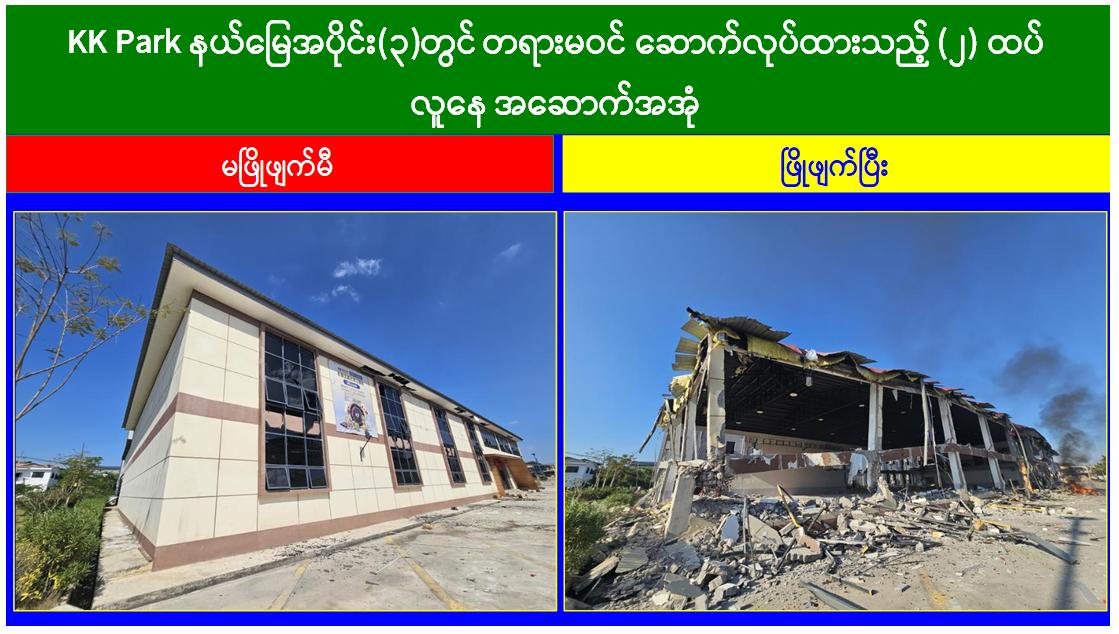 မြန်မာနိုင်ငံတော်အစိုးရအနေဖြင့် အွန်လိုင်းလိမ်လည်မှုများနှင့် အွန်လိုင်းလောင်း ကစားမှုများ အများဆုံးအခြေချလုပ်ကိုင်လျက်ရှိကြသည့် ရွှေကုက္ကိုလ်နယ်မြေနှင့် မြဝတီ-မဲထော်သလေး (KK Park) နယ်မြေများ၌ လုံခြုံရေးတပ်ဖွဲ့ဝင်များ၊ အုပ်ချုပ်ရေးအဖွဲ့ အစည်းများနှင့် ဒေသတွင်း တာဝန်ရှိသူများအပါအဝင် အဖွဲ့စုံပါဝင်သည့် ပူးပေါင်းအဖွဲ့ဖြင့် တရားမဝင် အဆောက်အအုံများအတွင်း ဝင်ရောက်ရှင်းလင်းခြင်း၊ အွန်လိုင်းလိမ်လည် လောင်းကစားမှုလုပ်ငန်းစဉ်များတွင်အသုံးပြုခဲ့သည့် သိမ်းဆည်းရမိပစ္စည်းများနှင့် တရား မဝင် အဆောက်အအုံများအား စနစ်တကျဖြိုချဖျက်ဆီးခြင်းနှင့် ချိပ်ပိတ်သိမ်းဆည်းခြင်း များ ဆောင်ရွက်လျက်ရှိရာ ယနေ့အထိ KK Park နယ်မြေအတွင်းရှိ တရားမဝင် အဆောက်အအုံ ၂၉၇ လုံးကို စနစ်တကျဖြိုချဖျက်ဆီးခဲ့ပြီးဖြစ်ကြောင်းသိရှိရသည်။