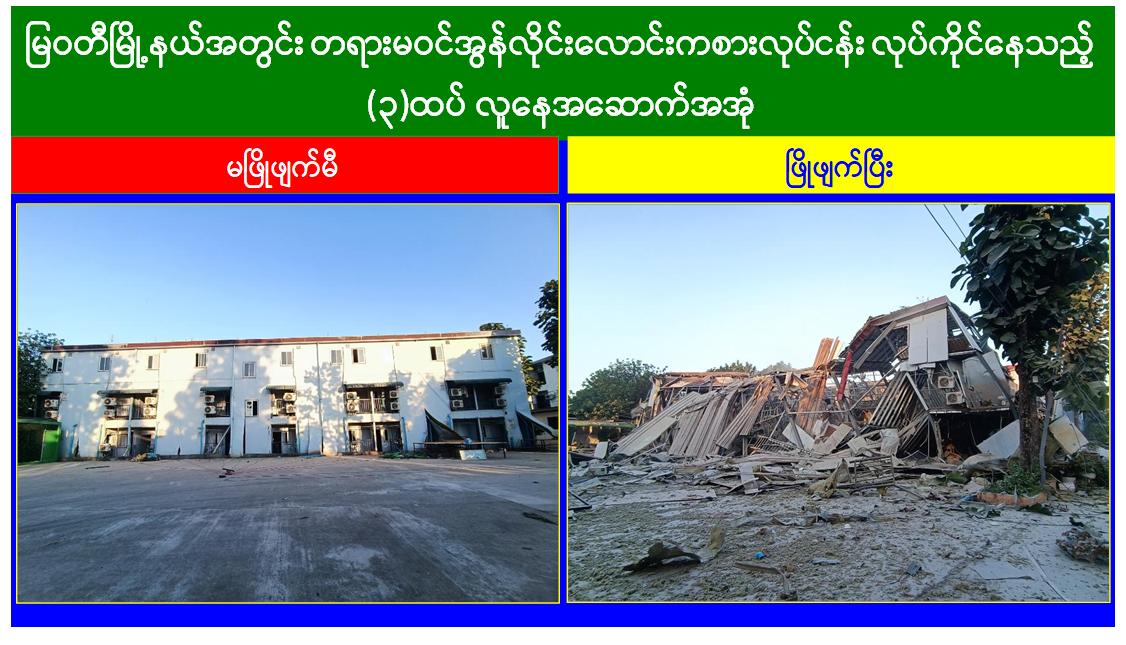 KK Park နယ်မြေအတွင်းရှိ အွန်လိုင်းလိမ်လည်မှုနှင့် လောင်းကစားမှုများကျူးလွန်ရာတွင် အသုံးပြုသည့် အဆောက်အအုံ ၂၉၇ လုံး ဖြိုချဖျက်ဆီးပြီးစီး၊ မြဝတီမြို့ အမှတ်(၃)ရပ်ကွက်တွင် တရားမဝင်အွန်လိုင်းလောင်းကစားမှုကျူးလွန်သူ ၂၄၈ ဦးထပ်မံဖမ်းဆီးရမိ